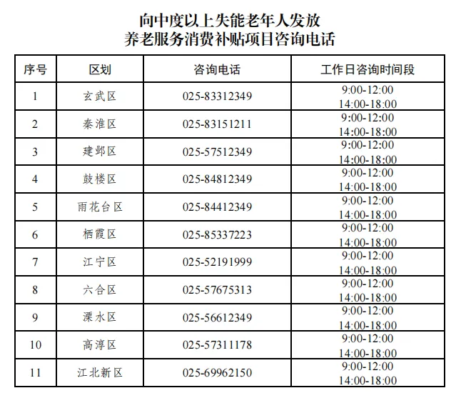 特别说明:该消费补贴项目与我市建邺区、雨花台区、江北新区(原浦口)的消费券养老服务不冲突哦,三个区的消费券服务仍可按原渠道享受。