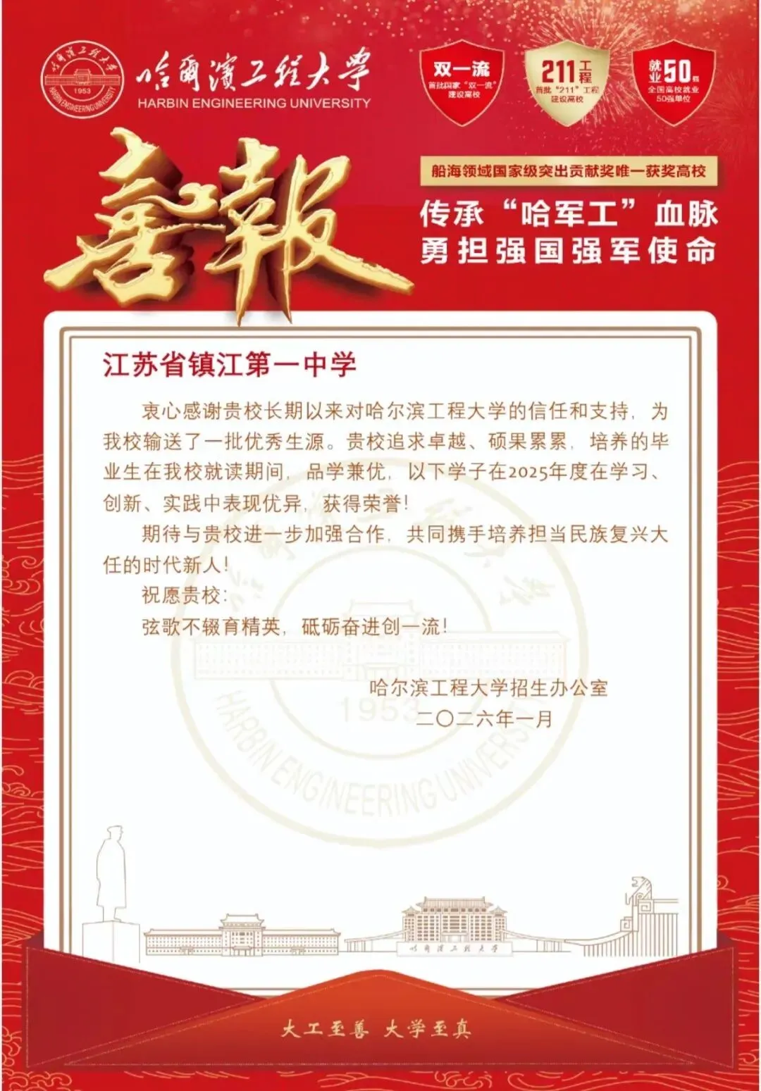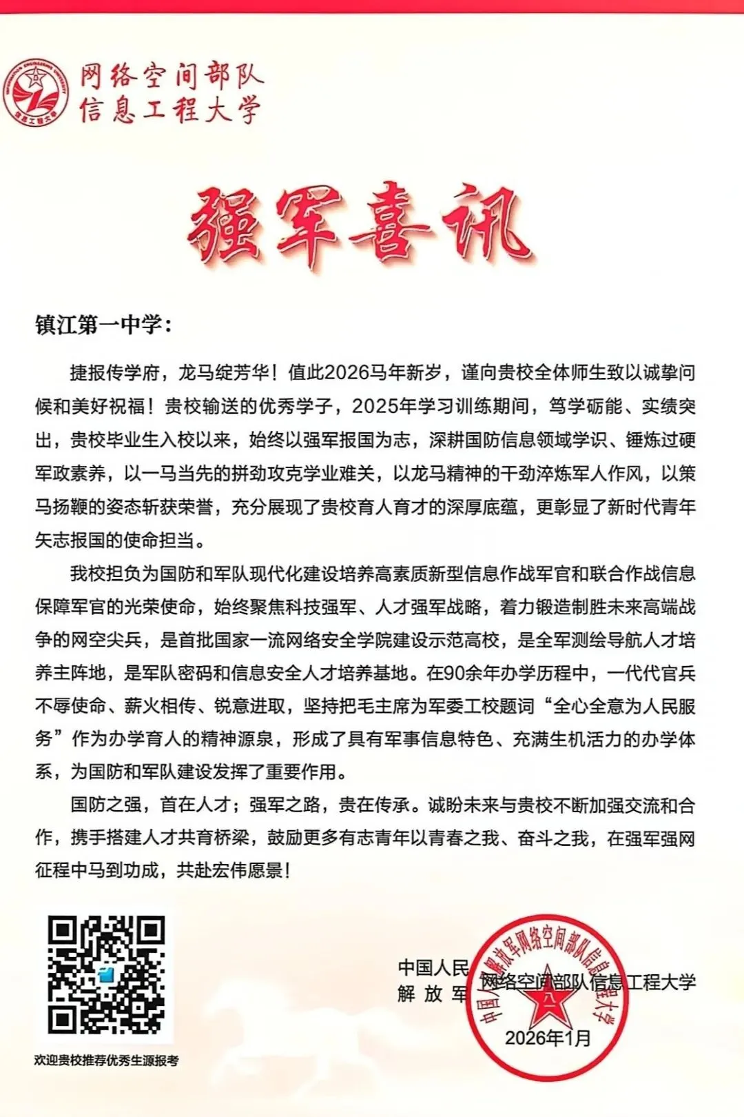 近日,南京大学、网络空间安全部队信息工程大学、西北工业大学、河海大学、哈尔滨工程大学、南京中医药大学等多所高校纷纷向我校发来喜报,热烈祝贺我校往届毕业生在大学期间勤学笃行、硕果累累,在更高学府续写青春荣光,展现了我校学子优秀的学风素养与精神风貌,为在校学弟学妹树立了榜样。