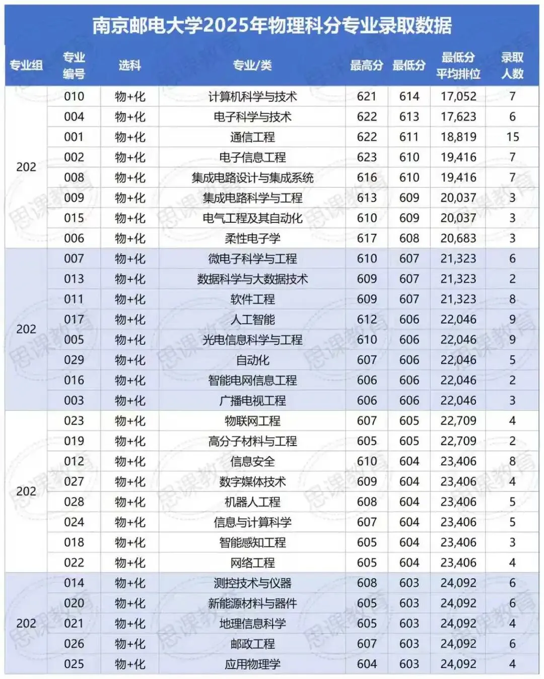 南京邮电大学2025年物理类分专业录取数据