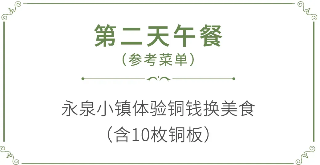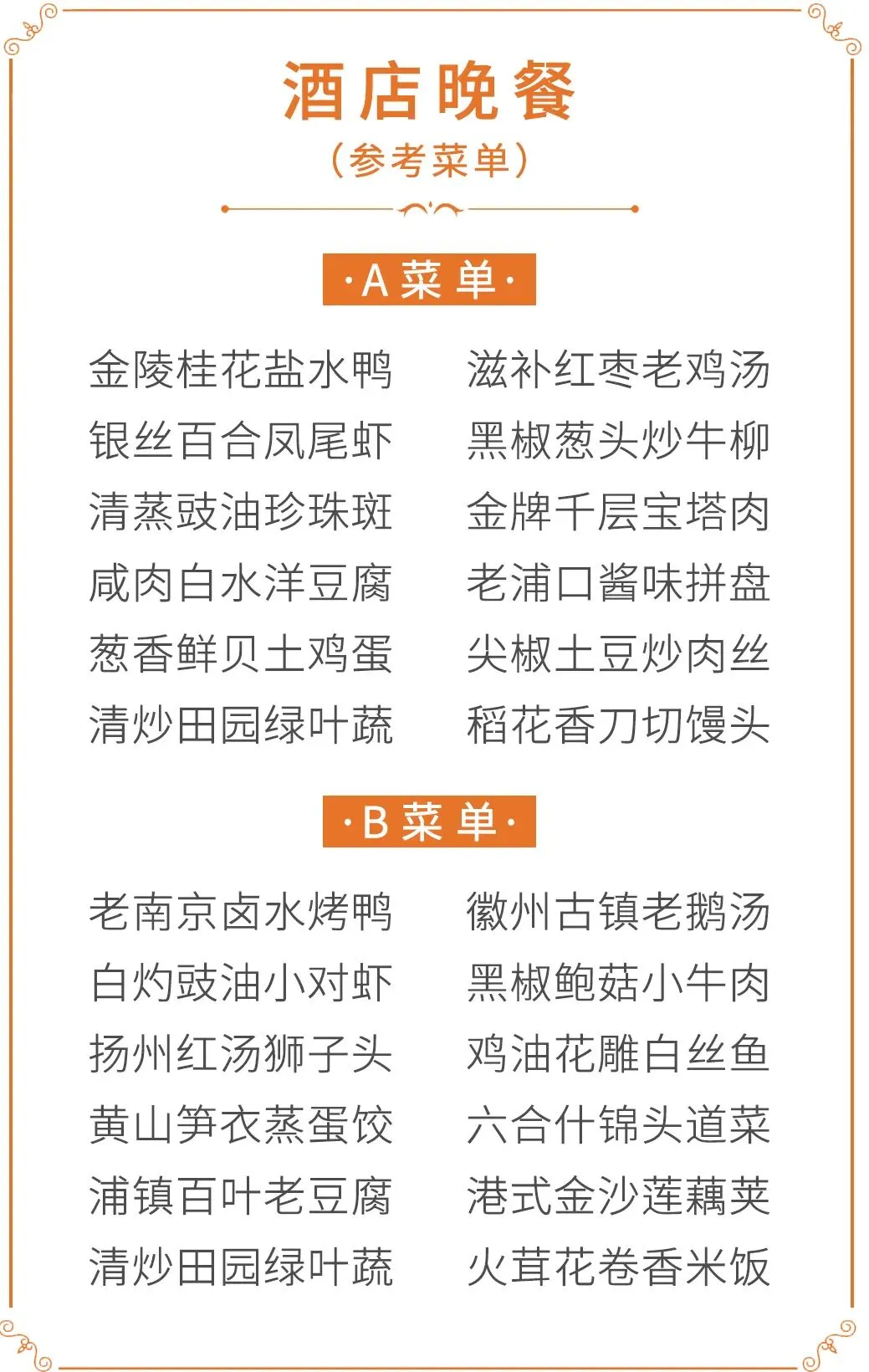 套餐包含2顿早餐 + 2顿正餐 + 30元泰州老街特色小吃券。
