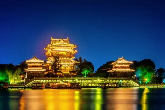 当夜幕降临,华灯初上,我们乘上古色古香的画舫船。半小时的航行,两岸是流光溢彩的亭台楼阁,耳边是轻柔的晚风与悠扬的曲声,泰州的历史与现代在此刻交融,如梦似幻。
