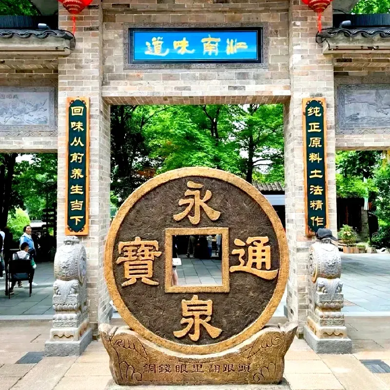 我们为大家准备了每人10枚铜币钱,也在永泉钱庄用人民币兑换几串铜钱(1枚铜钱=3元人民币),将沉甸甸的铜钱挂在腰间,瞬间仿佛穿越回古老的徽州商埠。一路边逛边吃,尝尝铜陵特色美食:杀猪汤、发糕、烧饼、馓子、山芋粉丝……