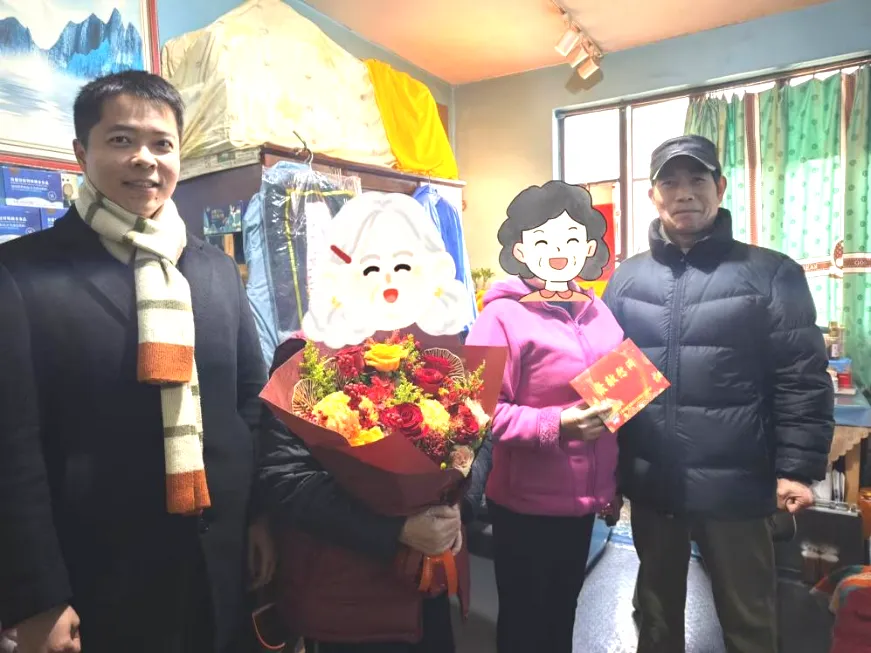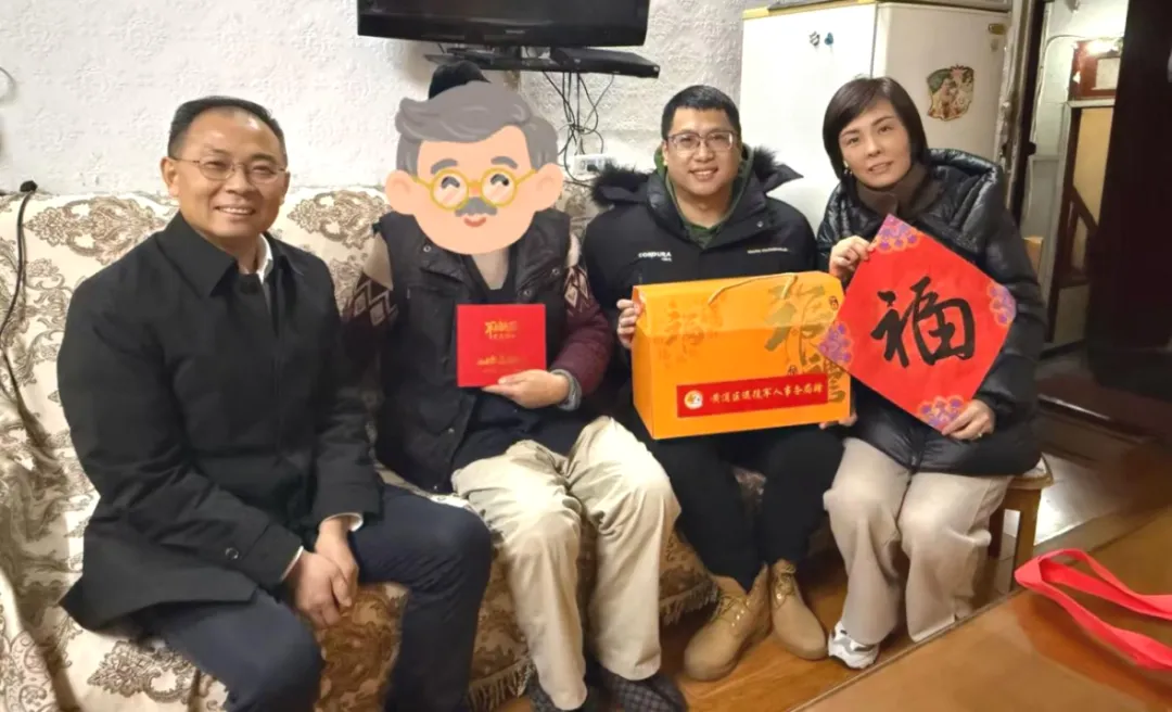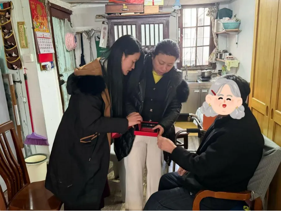 春节前夕,上海市拥军优属基金会黄浦区工作委员会副会长徐先忠一行来到南京东路街道江阴居委的烈属家中,向老人送上鲜花、慰问金及新春礼包,并详细询问了她的身体状况、生活起居和家庭情况。在了解到老人腿脚不便,且患有高血压等慢性疾病,日常由女儿照顾后,徐先忠叮嘱她要保重身体,保持乐观心态,并感谢他们家庭为国防事业做出的牺牲与贡献。