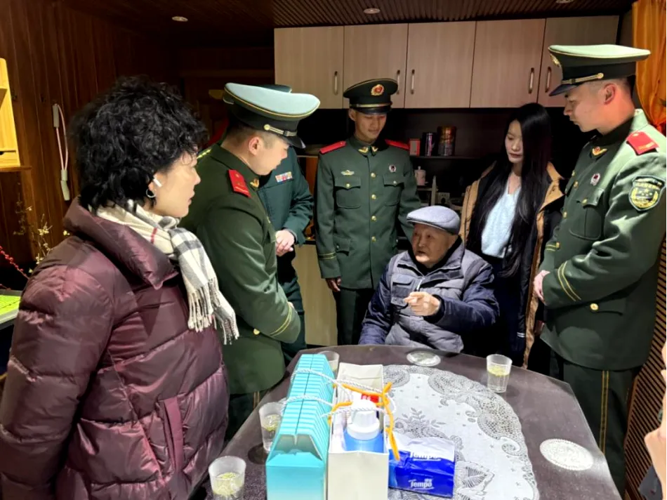街道持续深化与武警上海总队某支队下属中队的共建情谊,共同开展“关爱老兵”行动。2月3日上午,中队官兵代表在街道退役军人服务站和居委干部的陪同下,走访慰问了辖区内的两位高龄退役军人,与他们亲切交谈,聆听从军往事,关切询问健康状况,并送上新春祝福。