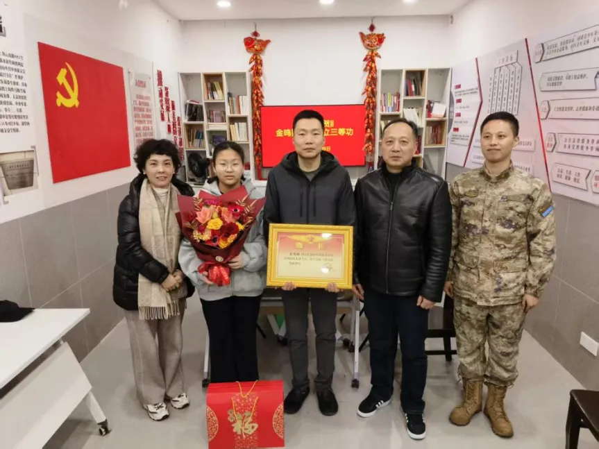 为弘扬拥军优属光荣传统,增强军人军属荣誉感,春节前夕,黄浦区人武部、区退役军人事务局与南京东路街道工作人员共同为辖区内立功受奖的现役军人家庭送上喜报、鲜花、慰问品和慰问金,感谢军属对国防事业的支持,鼓励他们继续做好坚强后盾,激励军人再立新功。