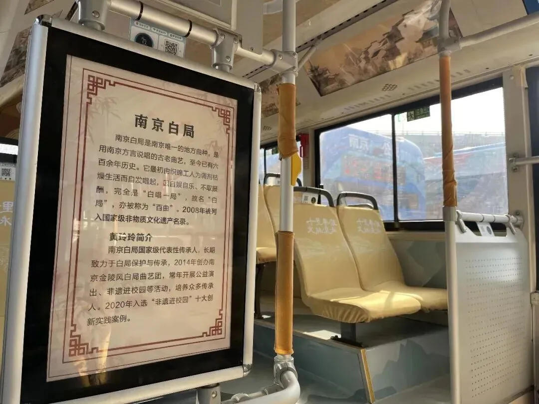 不止于此,游客朋友还能在乘坐儒家圣迹线时,听到南京白局国家级代表性传承人黄玲玲及其团队的短曲演艺,一口地道城南老南京话,一曲婉转江南民调,唱金陵历史文化,也讲南京公交“小蓝鲸”故事,在乡音袅袅里,读懂老南京的烟火人间。