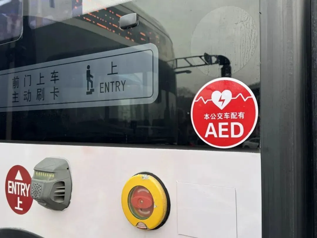 配备有AED设备的公交车均在车身外侧显示红色AED标识,方便市民了解车上急救设备配备情况。