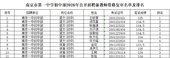 根据《南京市秦淮区教育局所属学校2026年1月公开招聘教师公告》(秦事招公告[2026]1号)的要求,现将我校资格复审的具体要求通知如下: