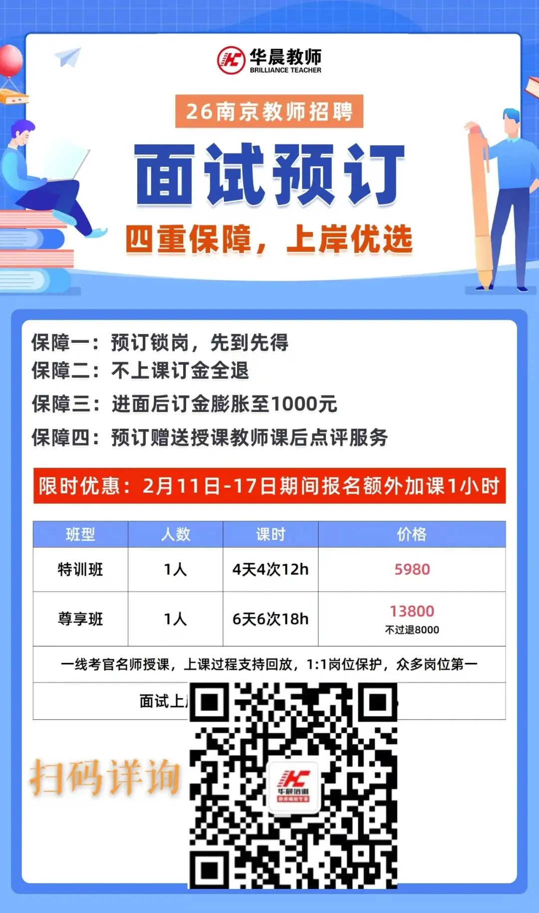 咨询南京教师编制考情,获取校招/社招备考建议,了解华晨教师培训考编课程,请加微信:13182870369