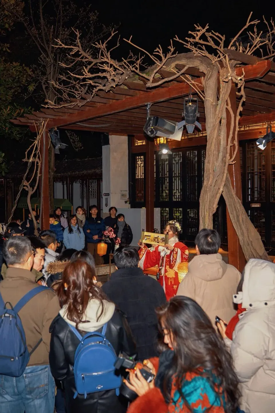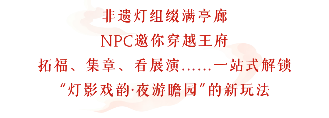 夜幕降临,灯光亮起,非遗灯组与灯笼交相辉映,光影流淌间,将这座“金陵第一园”装扮得如梦似幻。漫步其中,仿佛穿越回明清王府的新春盛宴。