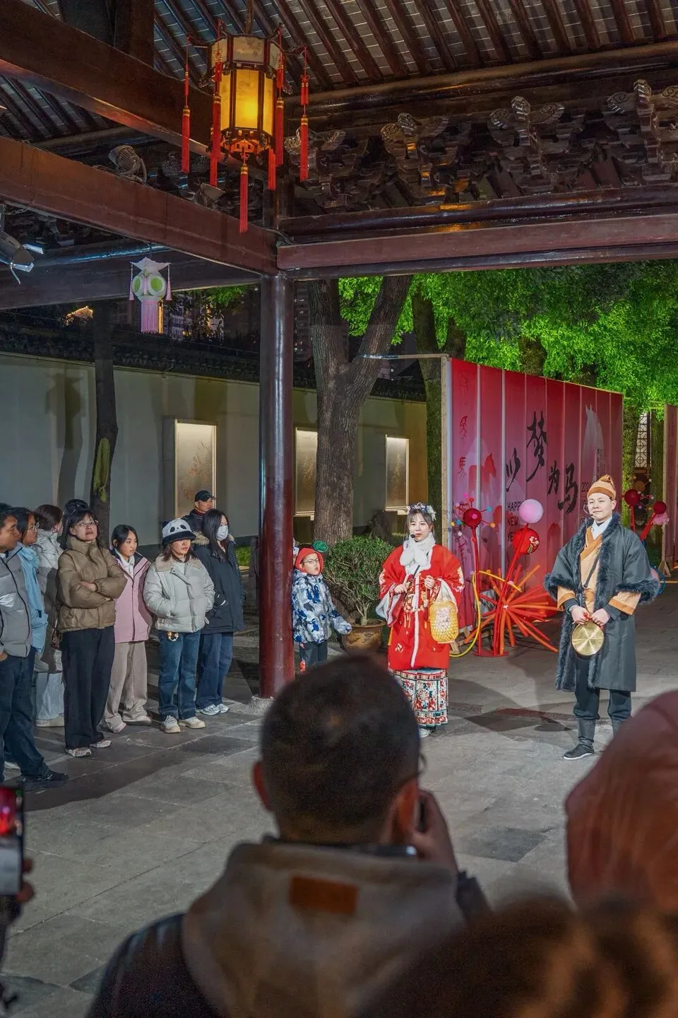 春节将至,整个瞻园更新了氛围美陈,各色灯笼缀满亭台廊榭,与瞻园的黛瓦、湖石、回廊相映成趣,既有王府的庄重雅致,又有新春的喜庆热闹。