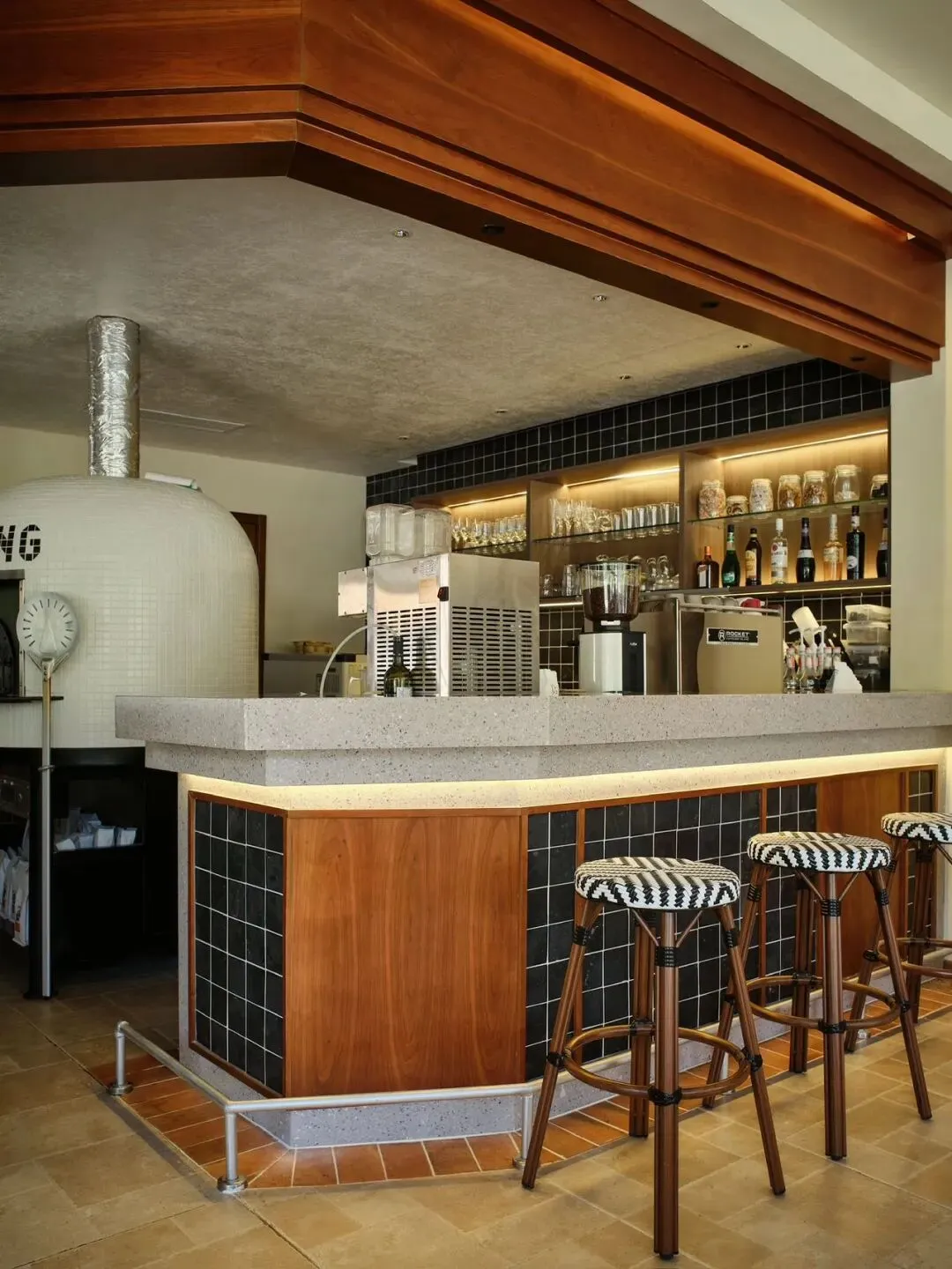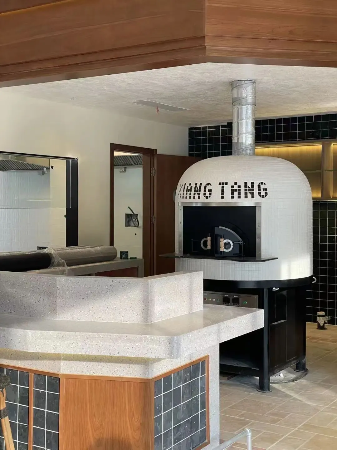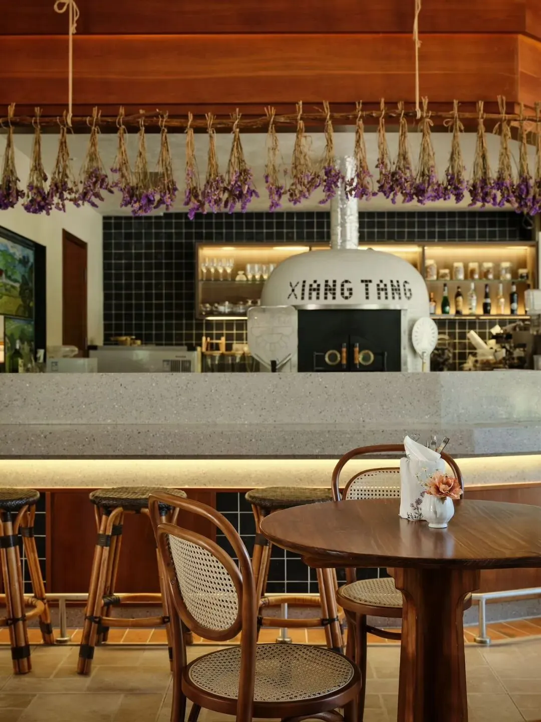 我们在建筑一层增设半开放式厨房,采用南法风格操作台与通透玻璃隔断设计,让食客能直观看到食材的新鲜处理与烹饪过程,拉近与主厨的距离,让用餐过程多了一份互动与烟火气。
