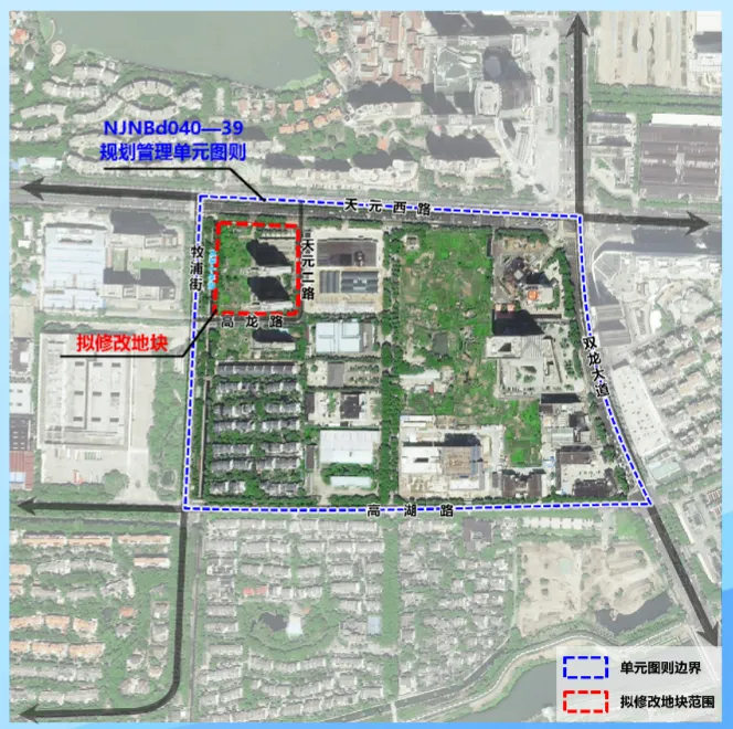 NJNBd040-39规划管理单元图则位于江宁区百家湖片区南部,东至双龙大道、南至高湖路、西至牧浦街、北至天元西路,用地面积约32.62公顷。