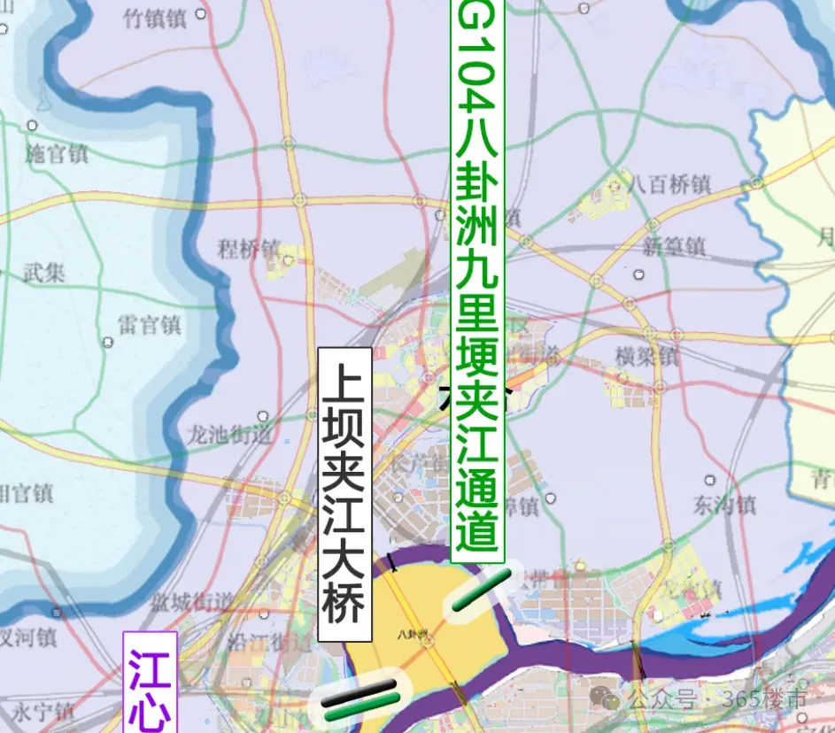 文件中指出,南京市规划新增2座,分别为江心洲中部夹江通道和G104八卦洲九里埂夹江通道。在2030年前,在深入开展项目前期工作并做好相关规划衔接的基础上,重点推动实施。