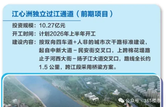 值得注意的是,在今年《南京市2026年经济社会发展重大项目名单》中,江心洲中部夹江通道赫然在列。