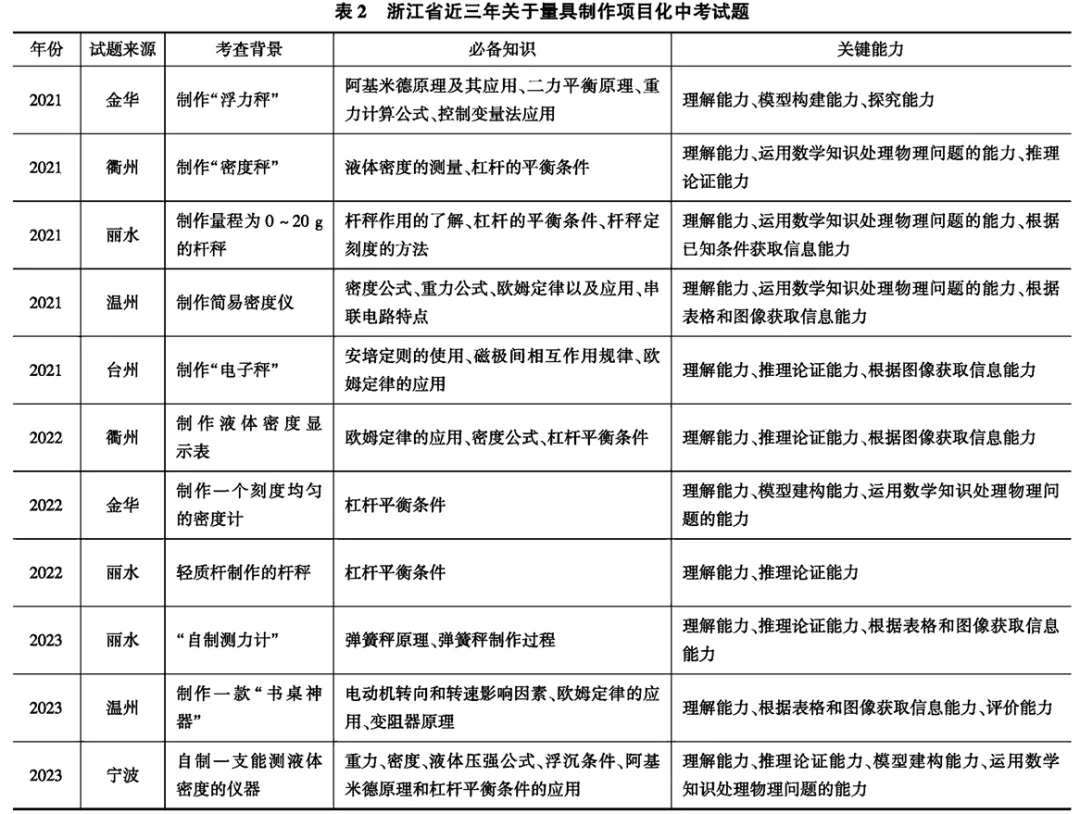 二、量具在初中科学跨学科项目化学习中的考查内容