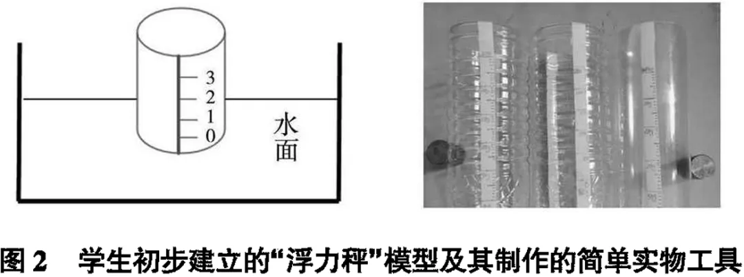 设计意图:学生以模型为基础,利用教师提供的相应器材,进行简单制作,得到“浮力秤”工具。该过程能极大地激发学生参与热情,并且通过模型指引进行实物制作,能最大限度地将理论和实际进行结合,突出将科学知识运用于实际的理念。同时在讨论出基本模型的过程中,建立“凡是有均匀变化规律的都可以做量具”的科学观念。