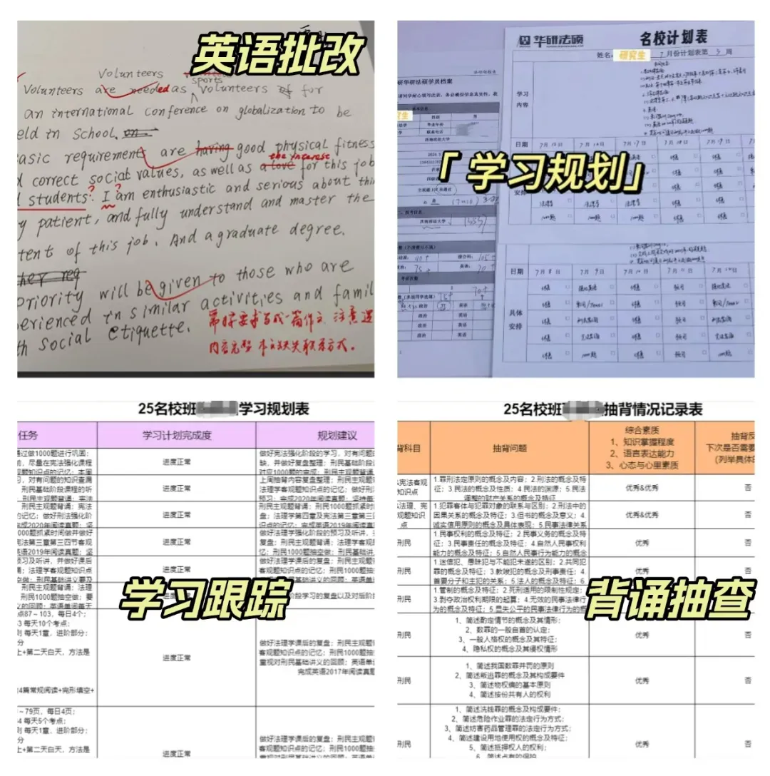 其中定制班学员在此服务基础上,还根据学员自身基础,日常测试成绩,有效学习时间和目标分数进行实时调整,从而制定个性化任务布置。