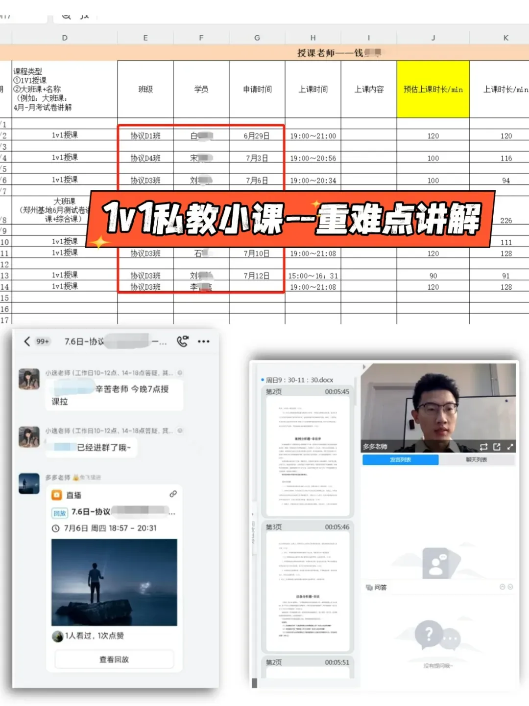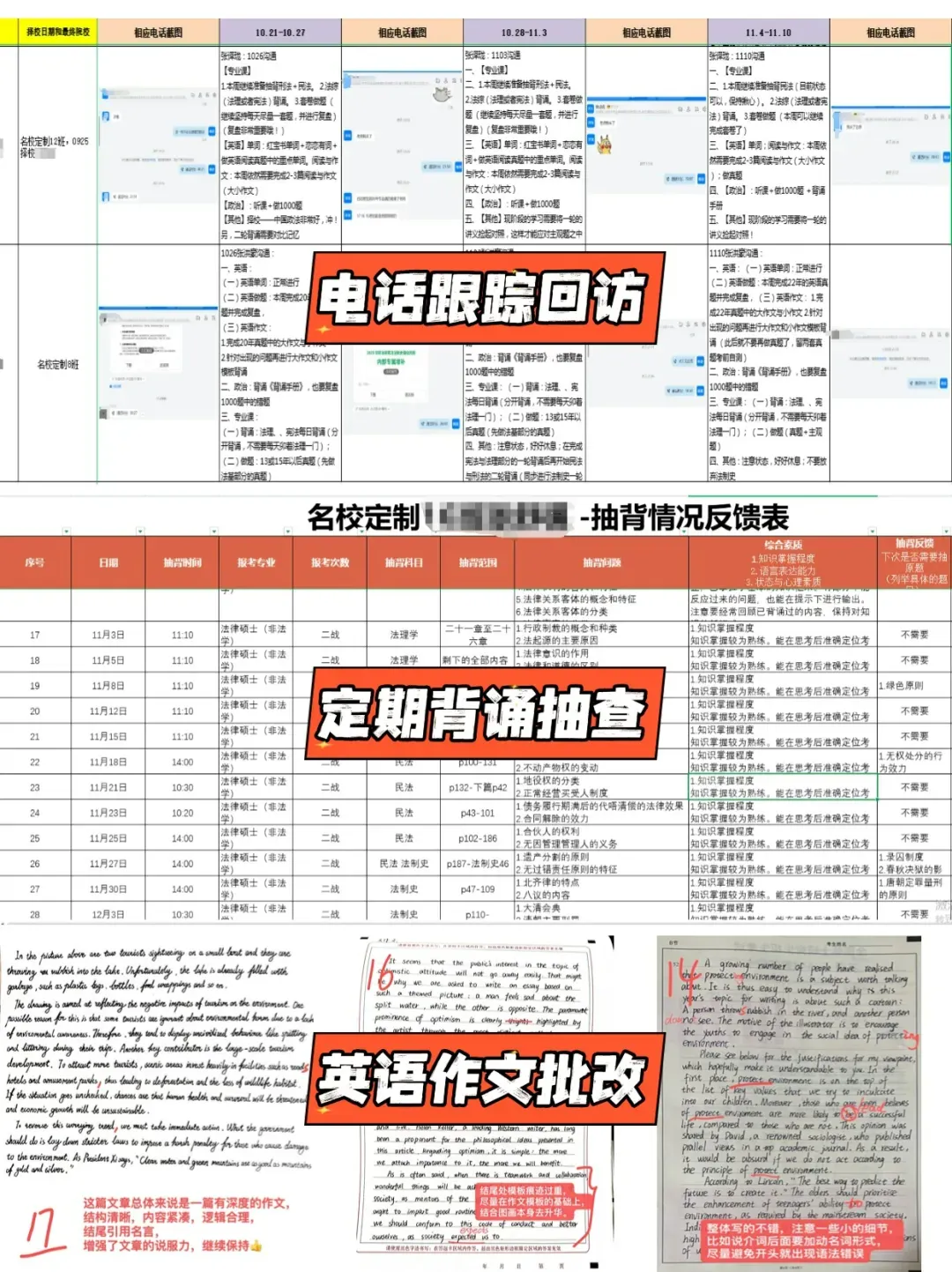 【一】服务概述:教务班主任和教辅老师全程监控学员的学习情况,旗舰班两周回访1次,协议班每周电话回访督促学员的学习进度,制定班级复习规划。