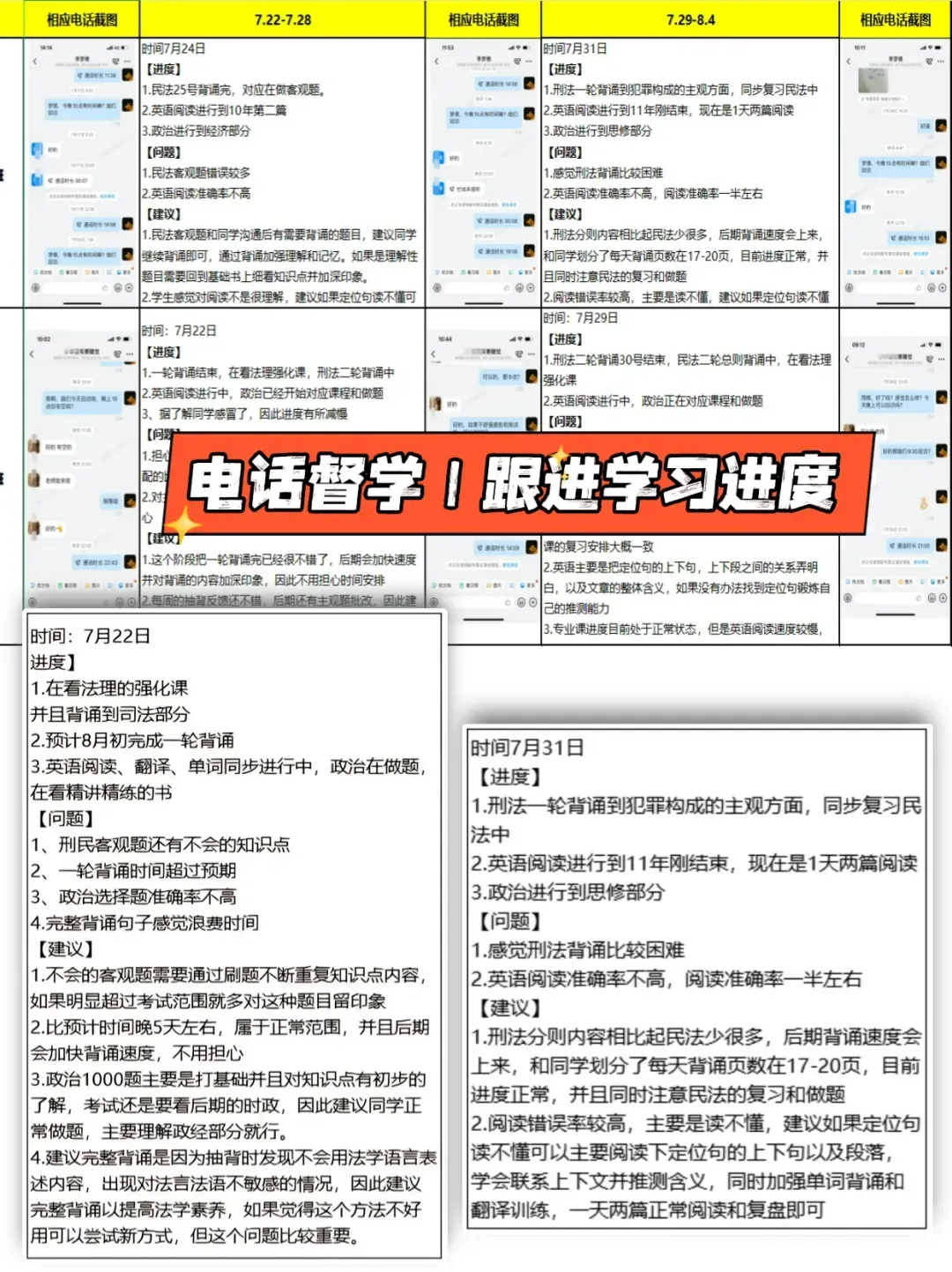 【二】服务效果:考研备考时间较长,学员容易产生懈怠心理,学习任务不能保持保量的完成,督学服务通过老师对学员的监督,让学员按部就班地完成学习任务,长线保持良好的学习状态,从而确保学习效果。