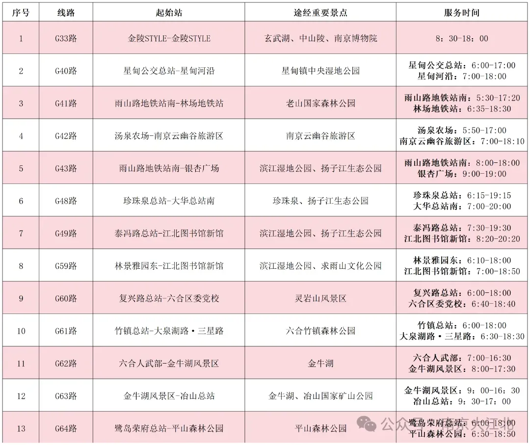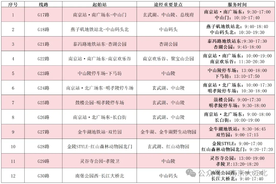 南京公交28条“G”字头的旅游观光线路