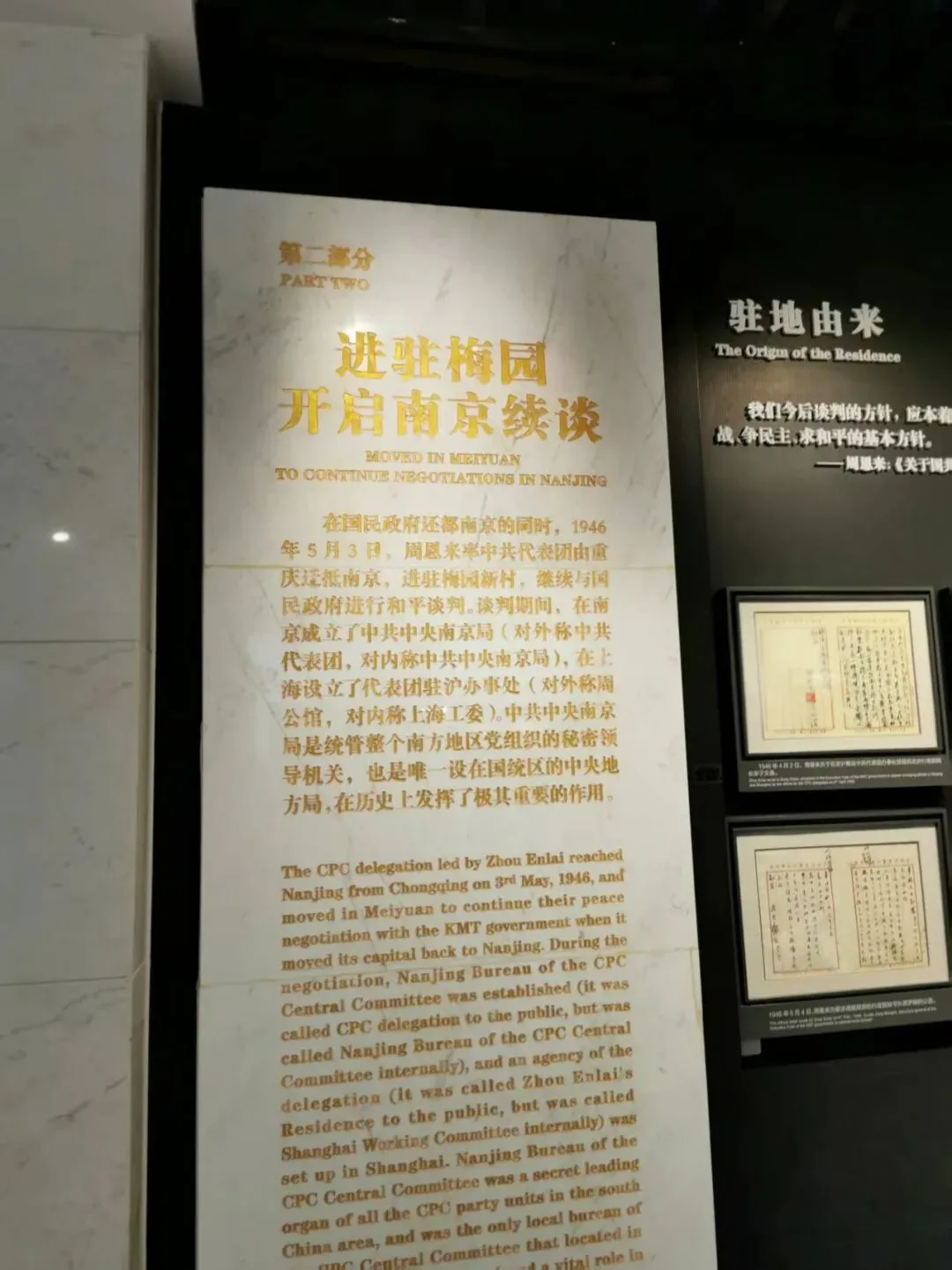 1946年5月3日,中共代表团迁来南京,驻在梅园新村17号、30号、35号。 1947年3月7日,中共代表团撤返延安,所留房屋财产委托民盟代管。