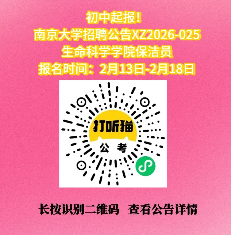 >【南京招聘】初中起报!南京大学招聘公告XZ2026-025生命科学学院保洁员!