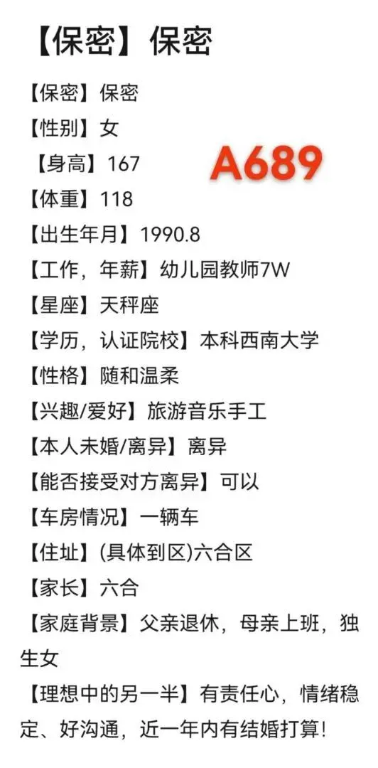 这是一个浮躁的时代,也是一个认识人成本极低的时代,无效的人和事占据太多的时间,骗子、约炮、理财销售等等让我们产生焦虑、内耗,为了帮助大家节约时间,相亲宝公众号发帖人不公布联系方式,我们红娘负责过滤一些不靠谱的人,专门进行验证,核实。提示大家:相亲急切的心情可以理解,但相亲过程中不要有任何金钱往来,切记切记。精准一对一推荐介绍,唯一线下门店地址:秦淮区大行宫长安国际2307。