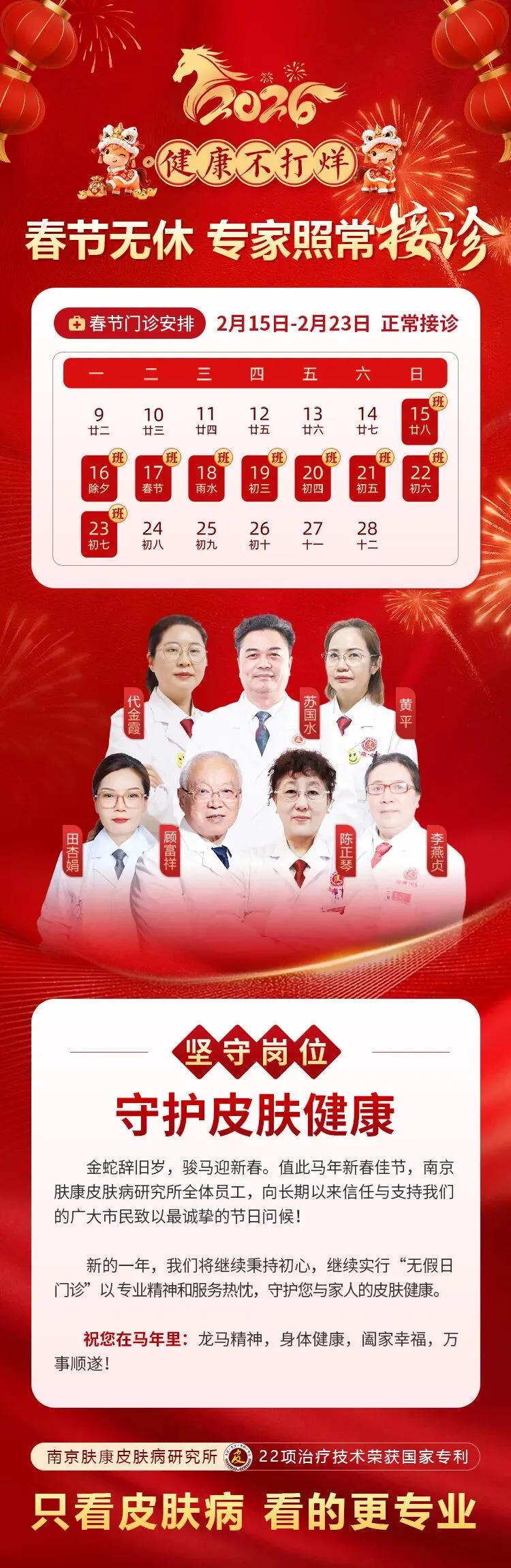 【通知】南京肤康皮肤病研究所过年不放假!春节健康守护“不打烊”!