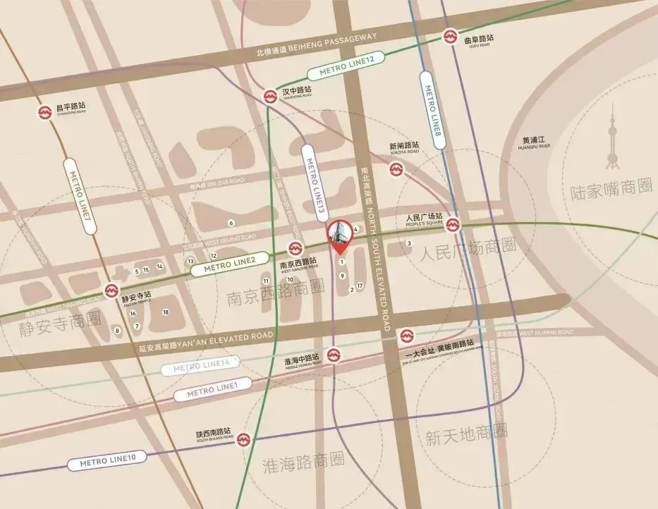 轨道交通:地铁2/12/13号线南京西路地铁口