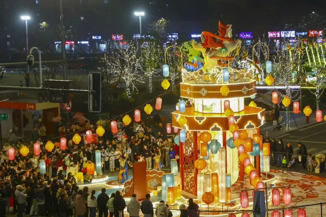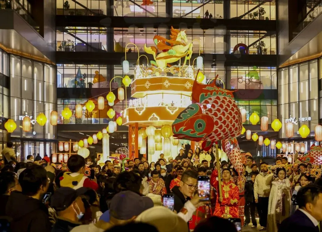 雨花万象天地联名敦煌博物馆,携手区文旅局联合打造新春灯会,开展新春非遗游园会、乌镇艺术节马踏云瑶、鱼灯巡游、敦煌乐舞。