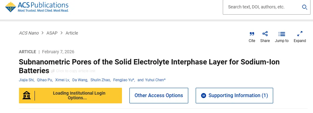 南京工业大学陈宇辉教授与于丰娇副教授在国际知名期刊ACS Nano上发表题为“Subnanometric Pores of the Solid Electrolyte Interphase Layer for Sodium-Ion Batteries”的研究论文。该文章以氧化还原介体分子为探针,结合电化学阻抗谱分析、差分电化学质谱和分子动力学模拟等方法对钠离子电池的SEI层进行研究,实验证实SEI内存在扩散通道,且其孔径结构受电解质组分和SEI自分解产气印象:NaPF₆因诱导持续产气而形成孔隙大的SEI层;相比较于碳酸脂类溶剂(EC/DEC),醚类溶剂(G2)凭借其富阴离子溶剂化结构、稳定热力学特性,能形成更致密的SEI层。实验结果表明,SEI的致密性不能仅凭氟含量、无机组分含量、离子溶剂化结构等指标判断,SEI自身的不稳定自分解产气长期被忽略,而这是导致SEI多孔的一个重要因素,值得重视。