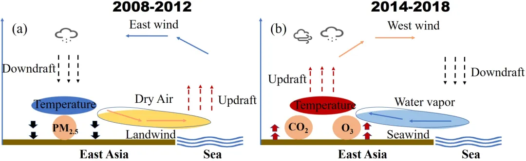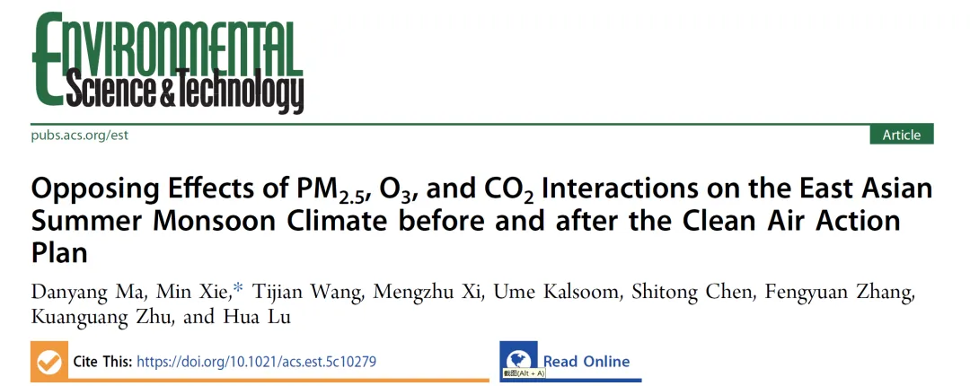 • 大气污染成分(PM₂.₅、O₃)和温室气体(CO₂)之间的相互作用显著影响东亚夏季风(EASM)气候。