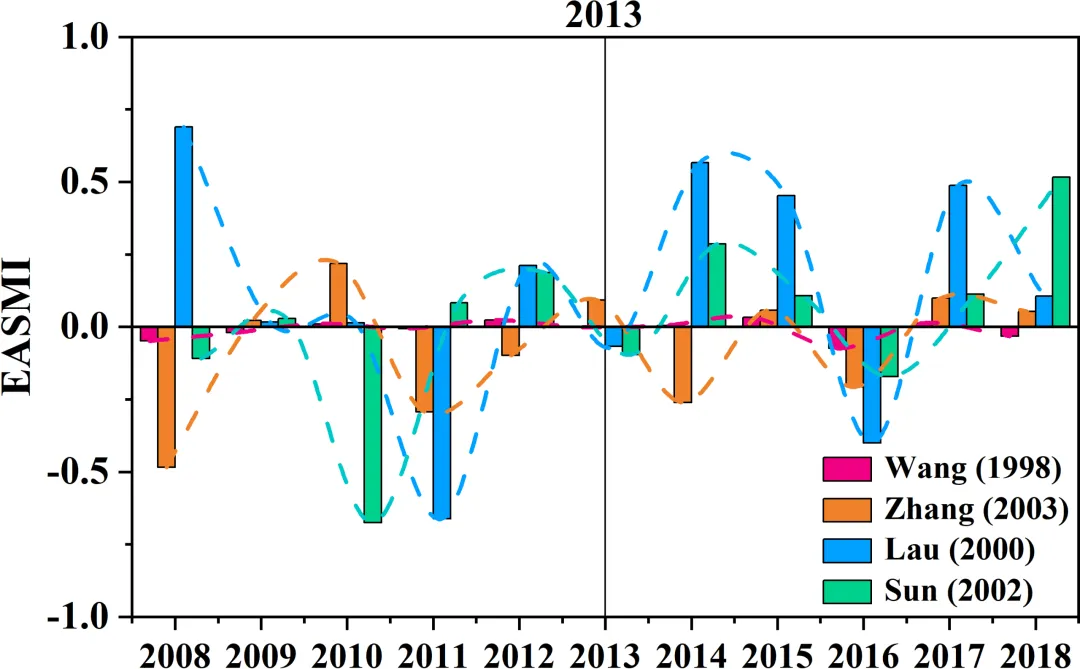 • 相互作用在2013年前削弱了EASM ,在2013后增强了EASM。