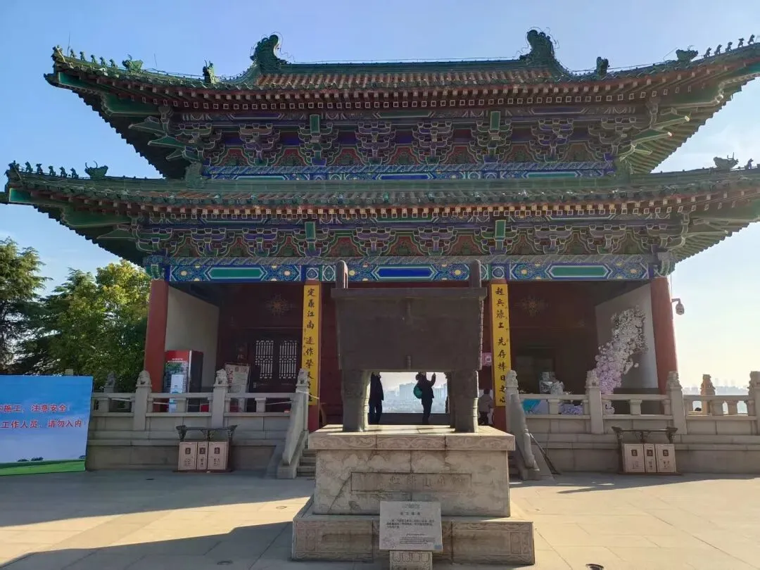 阅江楼鼎:重达4吨的全国最大仿司母戊鼎,鼎上刻有藏头诗,将每句首字连读,即为“狮子山阅江楼鼎”,寓意深远。