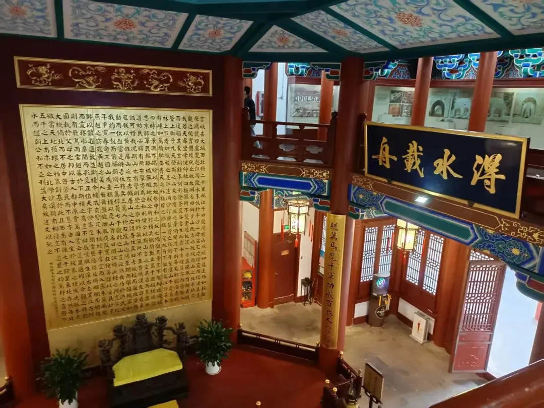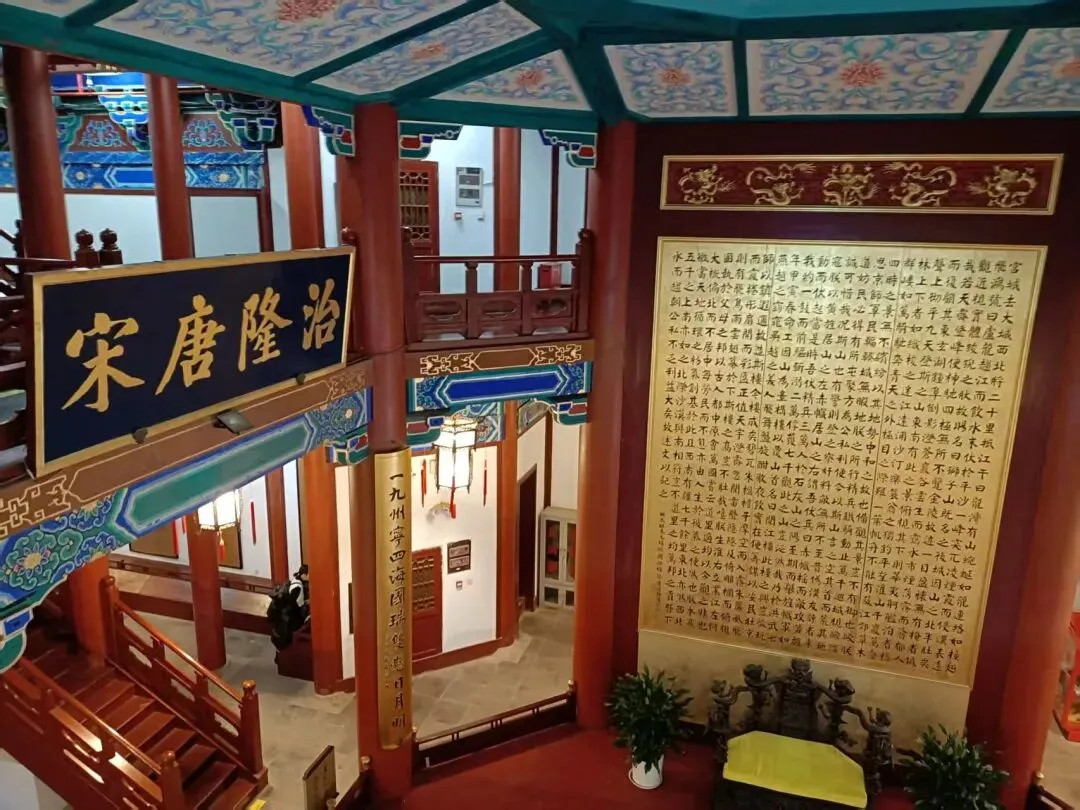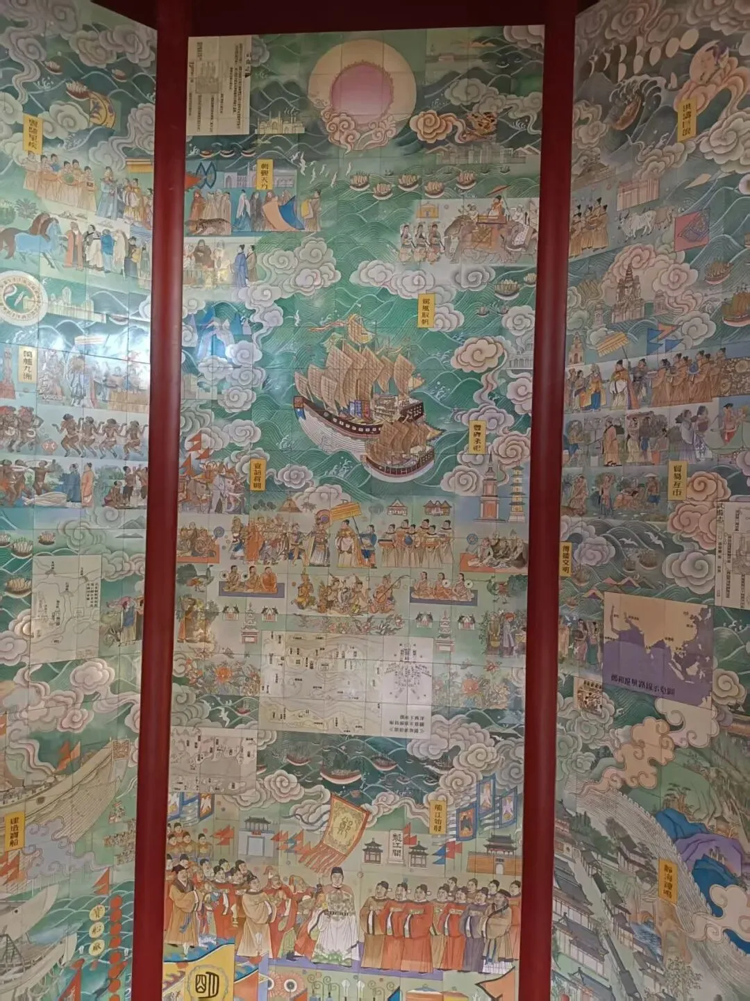 镇楼之宝——郑和下西洋瓷画:三楼悬挂着国内最大的景德镇瓷画——郑和下西洋瓷画,高12.8米、宽8米。瓷画由12个部分组成,生动描绘了郑和七次出使西洋的壮举,从建造宝船到宣传中华文明,是了解明代航海史的生动教材。