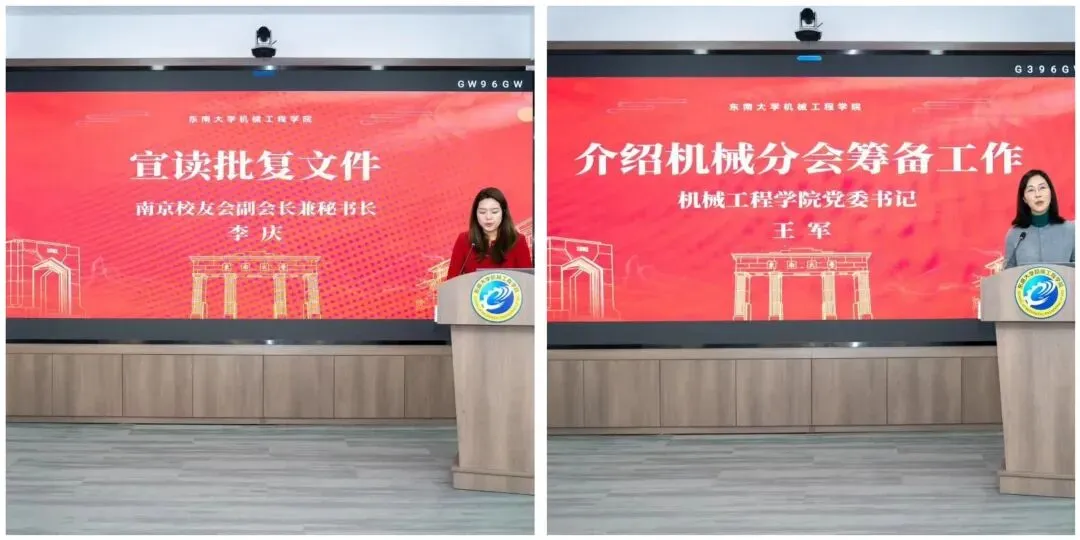 大会在东南大学校歌的歌声中启幕。东南大学南京校友会副会长兼秘书长李庆现场宣读机械分会成立批复文件,正式开启在宁校友们与母校母院凝心聚力、共同发展的新征程。