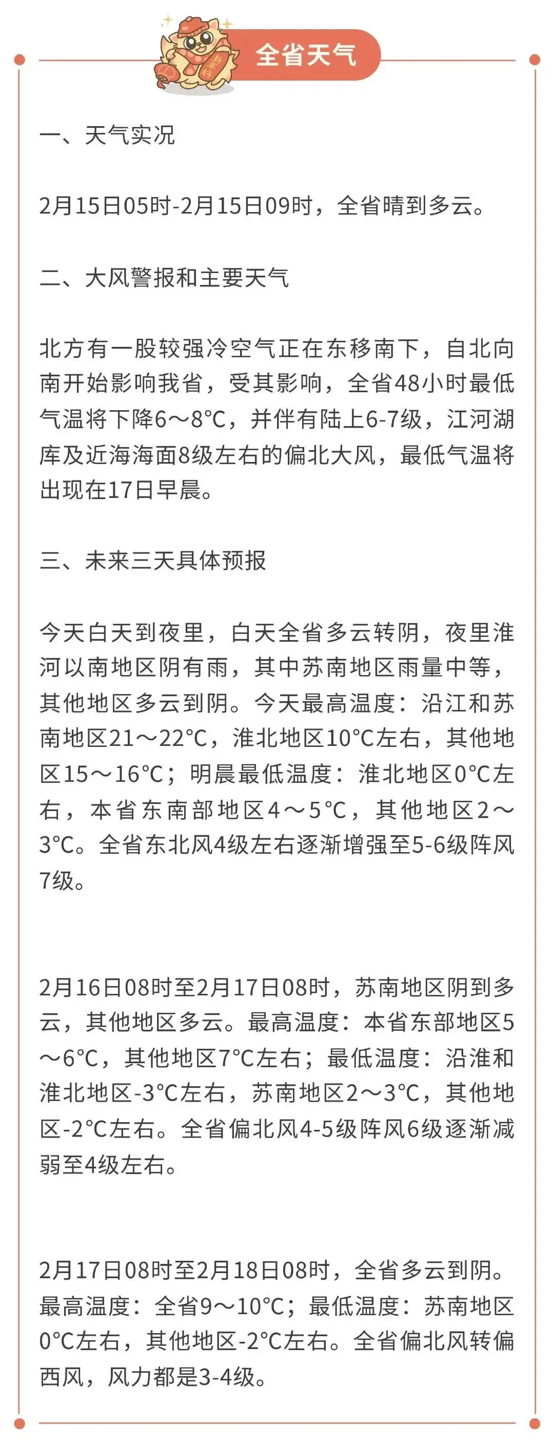 【大风警报】北方有一股较强冷空气正在东移南下,自北向南开始影响我省,受其影响,全省48小时最低气温将下降6~8℃,并伴有陆上6-7级,江河湖库及近海海面8级左右的偏北大风,最低气温将出现在17日早晨。