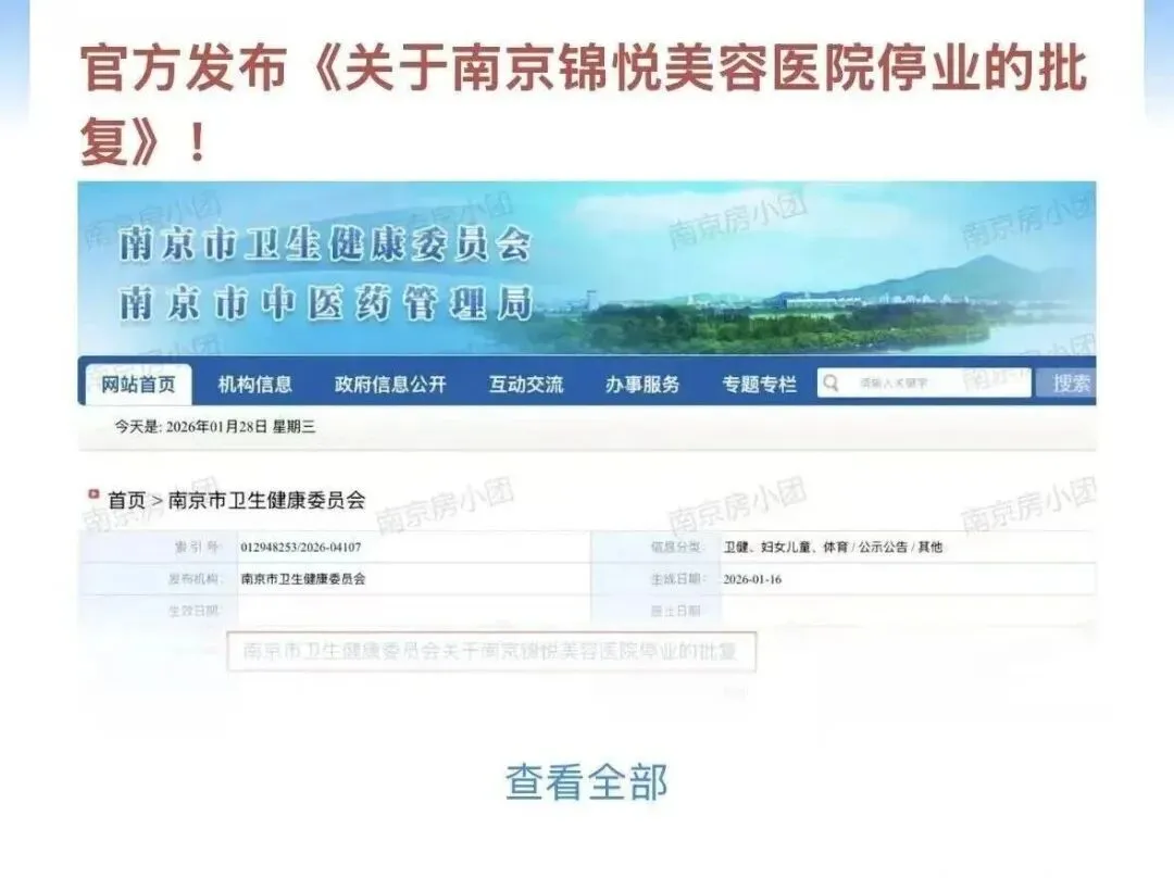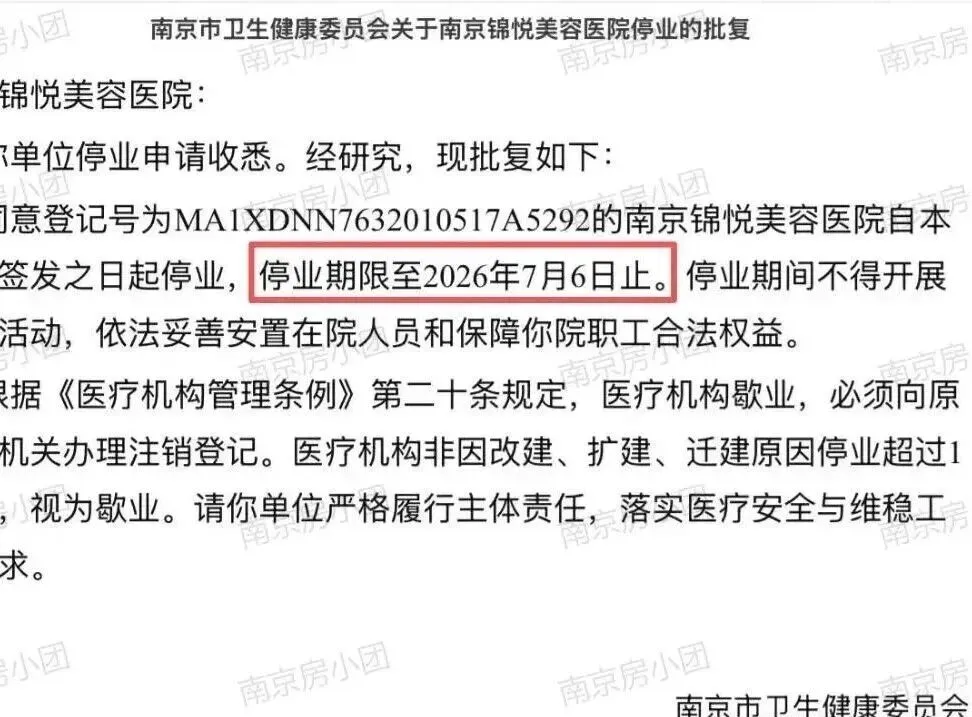 近日看到消息,南京锦悦美容医院从1月16号起停业,到7月6号为止,半年不能看病、不能打针、不能做项目。不是被查封,是自己申请的,卫健委批了。这事儿听起来挺正规,可翻一翻它之前的路,就没那么轻松了。