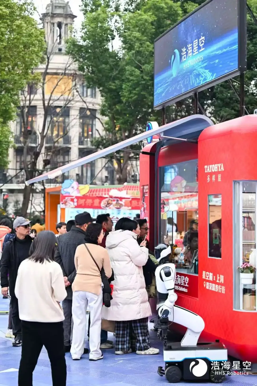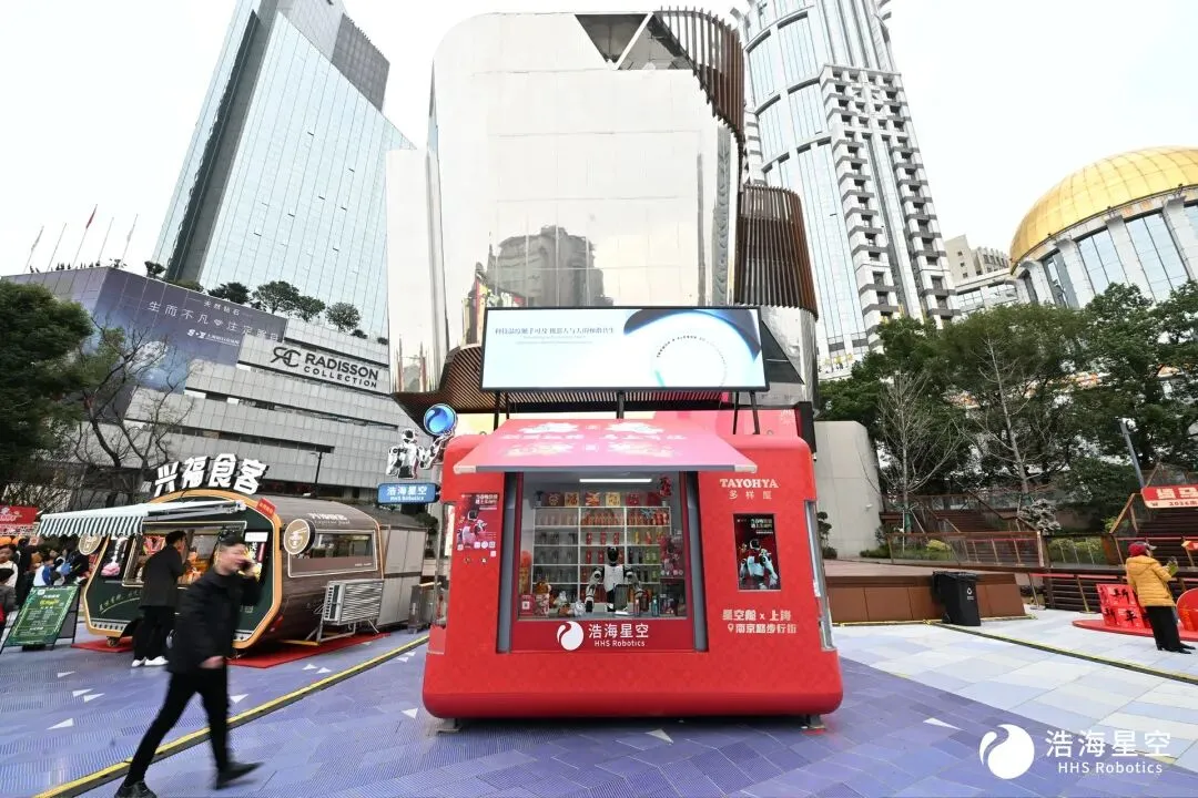这座智能小屋24小时不打烊,这背后离不开浩海星空自主研发的核心技术支撑——“星空舱”搭载了自研VLA大模型与人形机器人,支持室外全场景语音交互、端到端任务理解与执行,即便在人流嘈杂的商圈,也能清晰识别游客指令,从容应对各类购物需求。