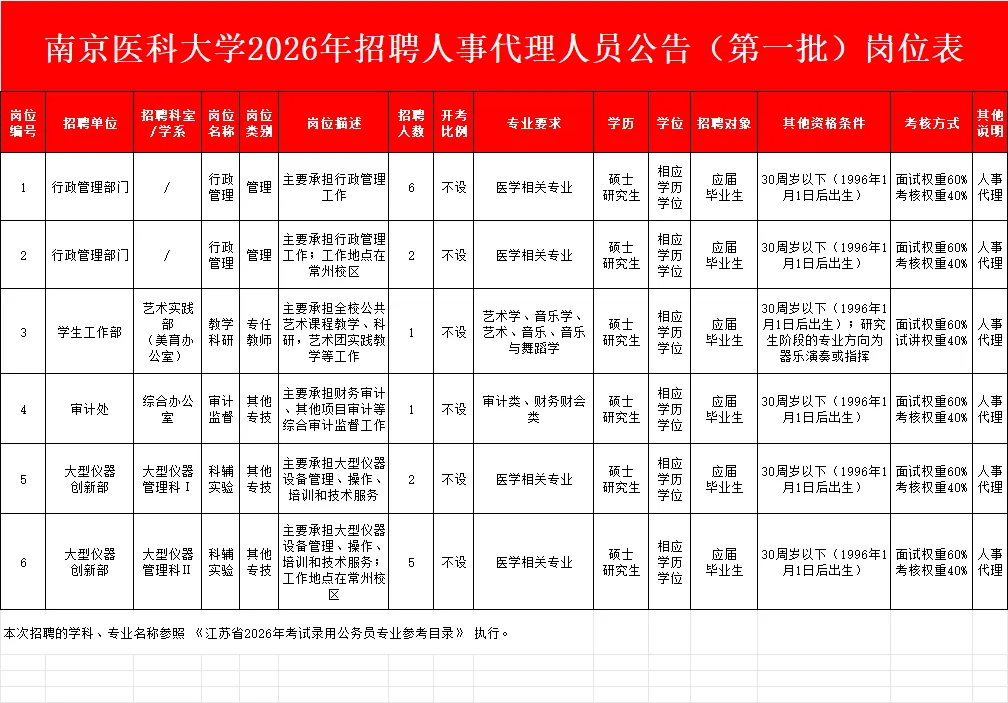 南京医科大学公开招聘人员公告