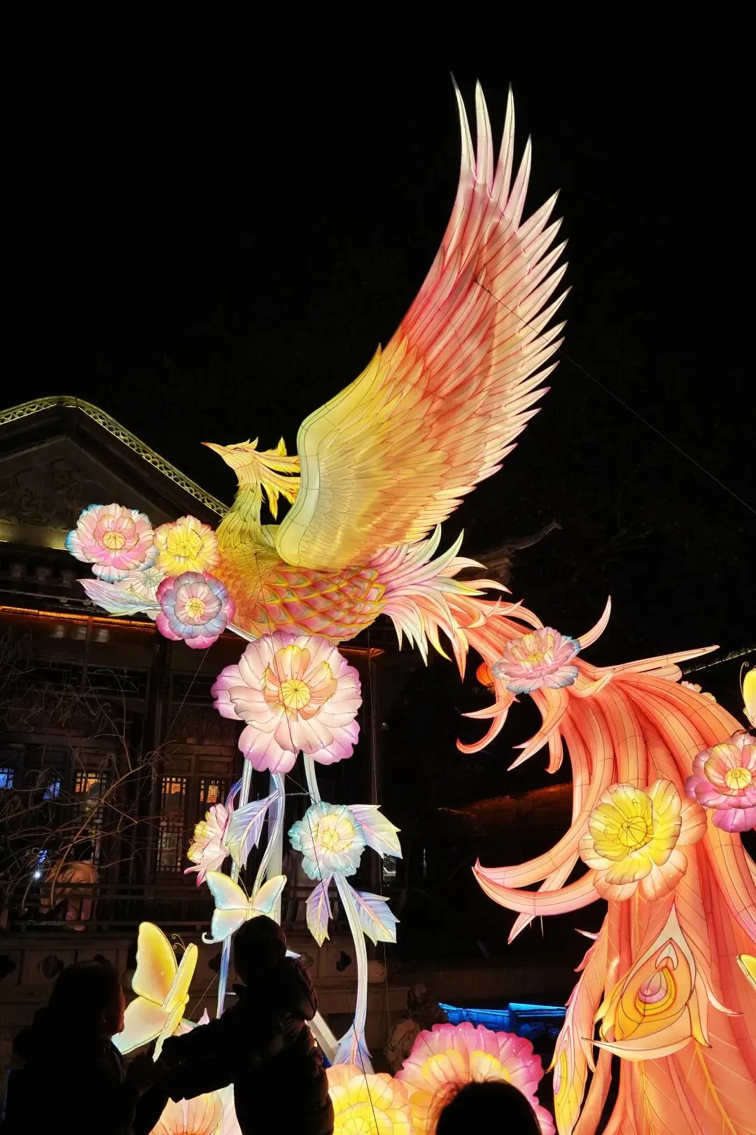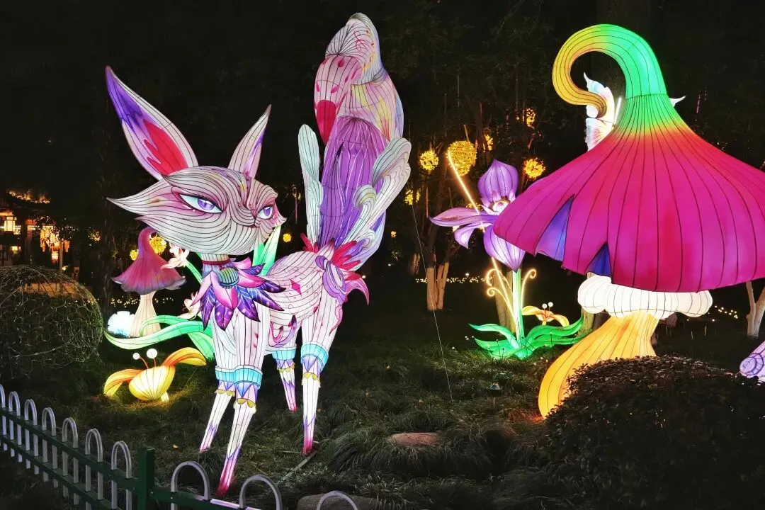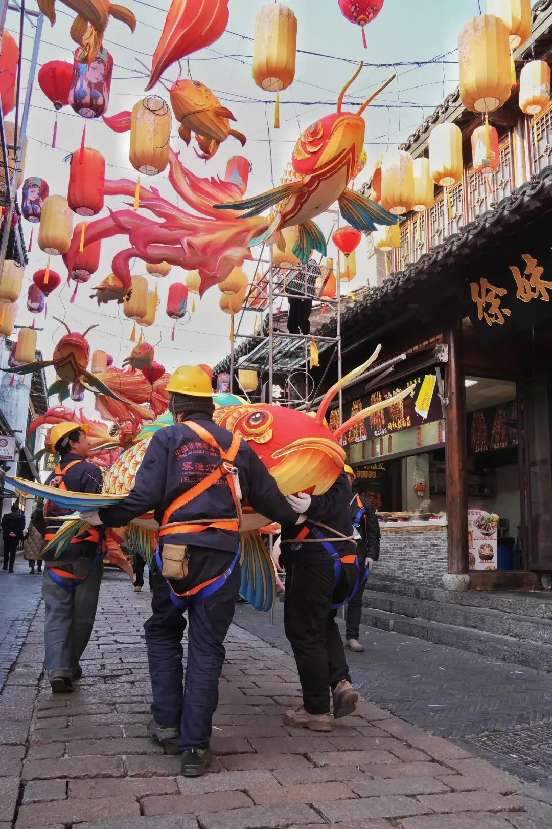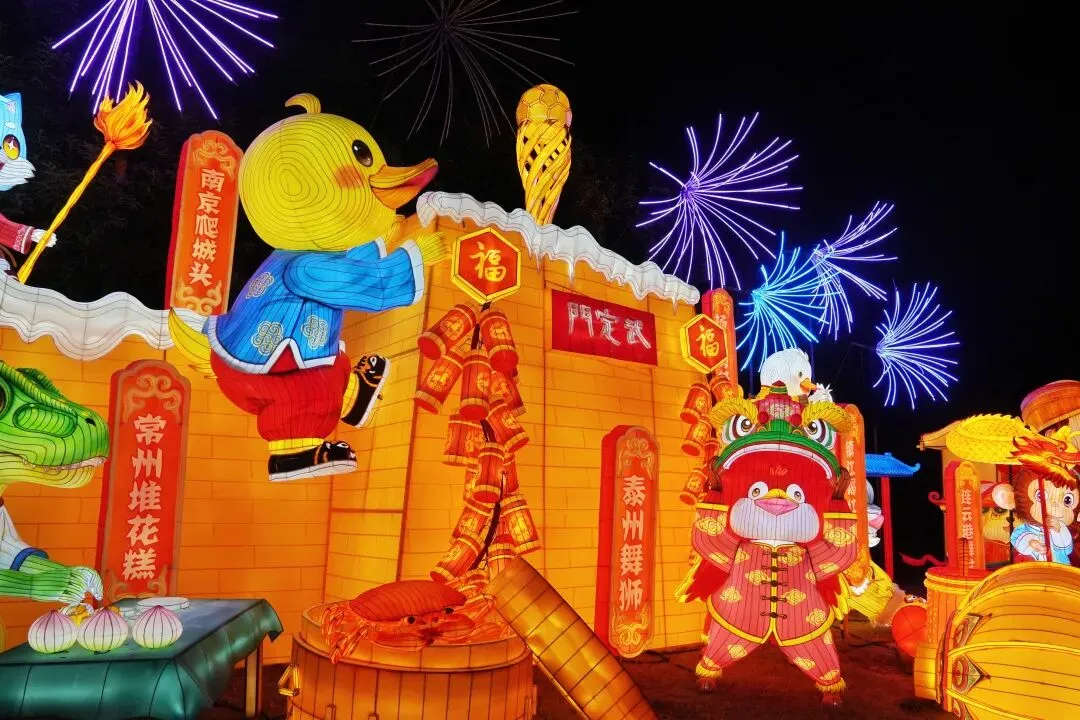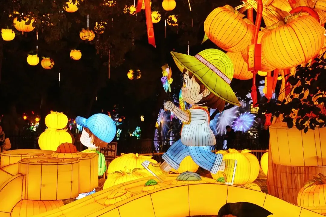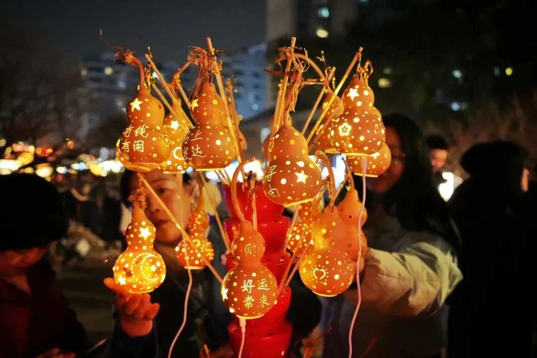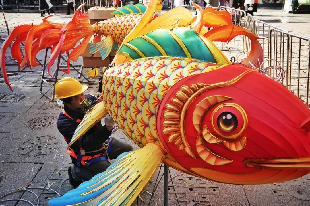 老门东的青石板巷被暮色轻轻笼罩,一排排彩灯顺着屋檐垂落,风一吹便轻轻摇晃,把古巷染得温柔又热闹。巨型主题灯组在夜色降临的瞬间次第亮起,金红交错的飞马灯、金鱼灯、凤凰灯、生肖灯……璀璨绽放流光溢彩,一瞬间便如点亮了整座金陵城。