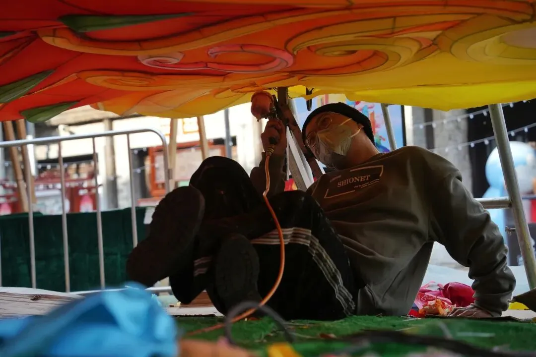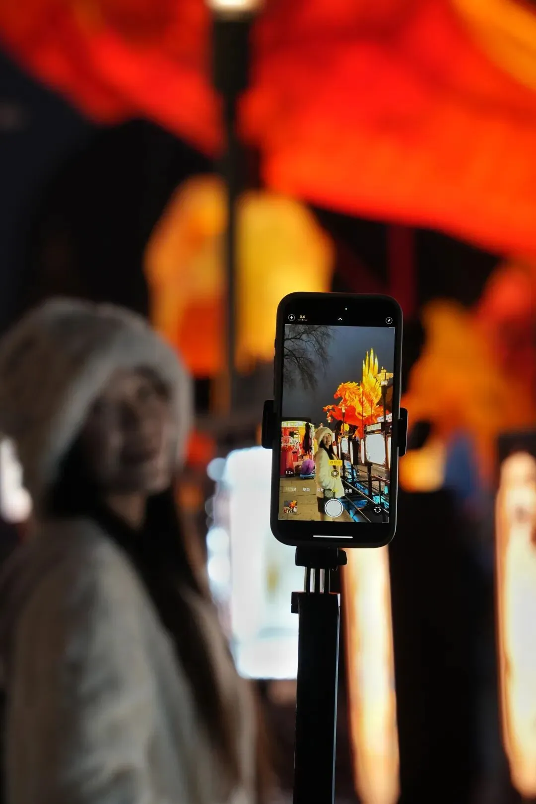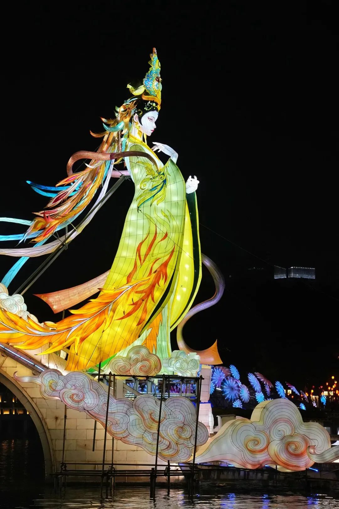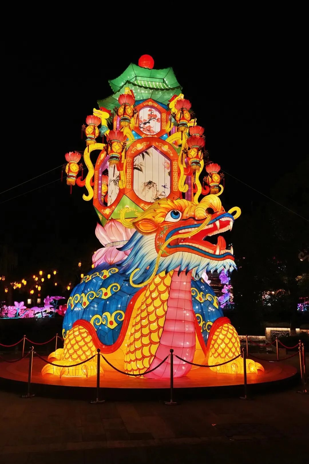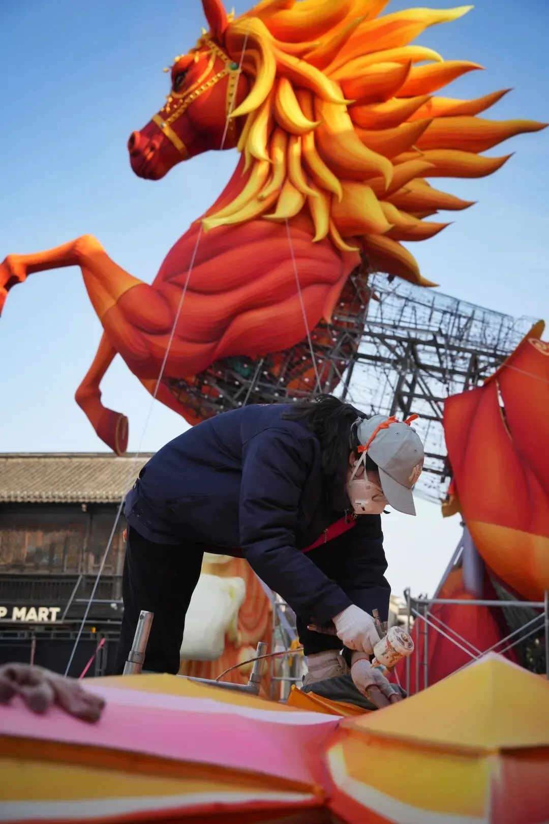老门东的青石板巷被暮色轻轻笼罩,一排排彩灯顺着屋檐垂落,风一吹便轻轻摇晃,把古巷染得温柔又热闹。巨型主题灯组在夜色降临的瞬间次第亮起,金红交错的飞马灯、金鱼灯、凤凰灯、生肖灯……璀璨绽放流光溢彩,一瞬间便如点亮了整座金陵城。