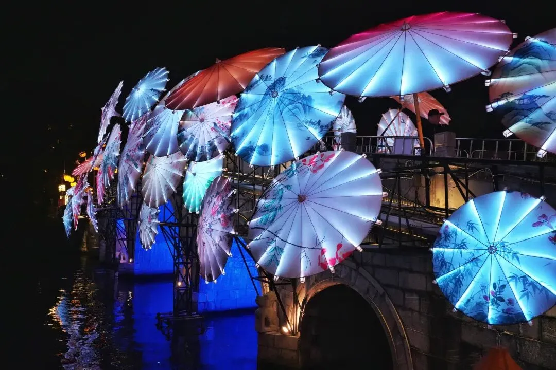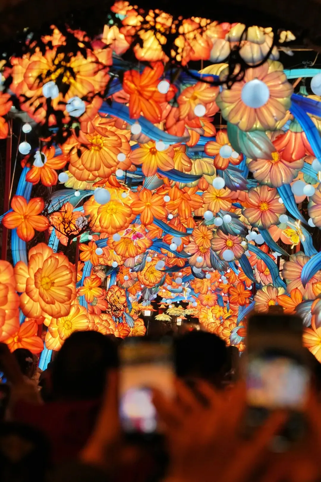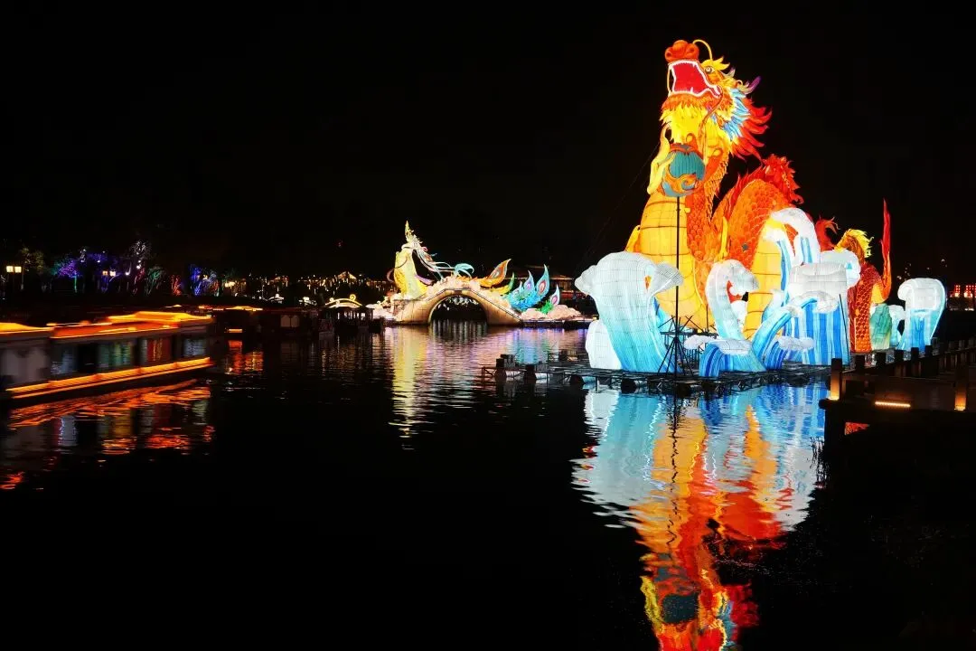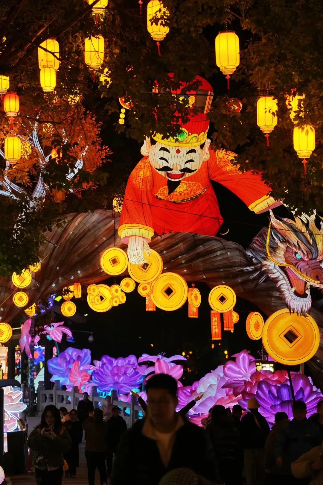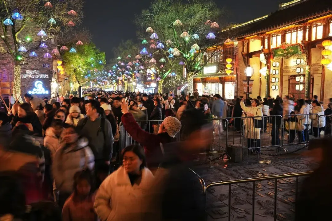 祈福灯树上缀满万盏星灯,流光如瀑布般垂落,暖光漫过肩头,游人纷纷举起手机,想把这漫天灯火永远定格。秦淮河上,画舫缓缓穿桥而过,满河灯影被船桨轻轻摇碎,化作一河流动的星光,桨声欸乃,人声喧闹,交织成南京最浓、最暖的年俗烟火气。