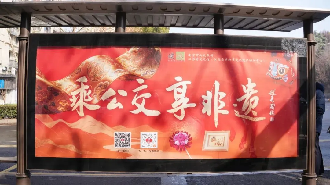 同时,南京公交还联合江苏省文化馆打造“读城”主题站台,站台设计以南京云锦、剪纸等非遗元素为视觉基底,流光溢彩的纹样与站牌相映成趣,云锦的华美经纬与剪纸的玲珑线条交织其间,让市民在候车间隙亦能品读金陵匠心。