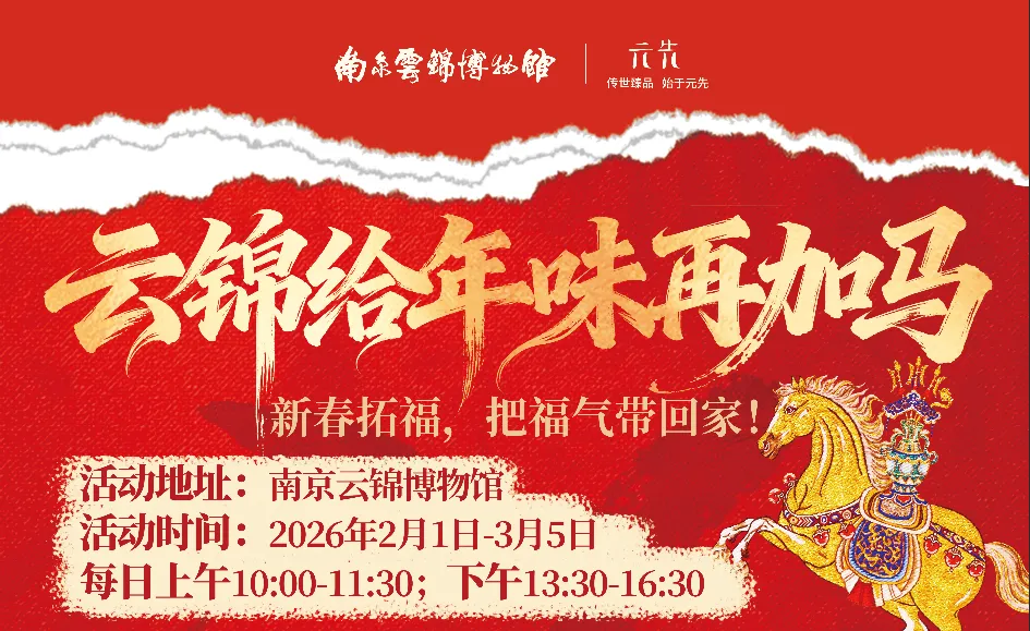 当天还可在馆内参与“新春拓福”活动,拓印源自国宝级云锦的“福”字:六则《马上有福》摆件与二则《华羽迎福》镜框。