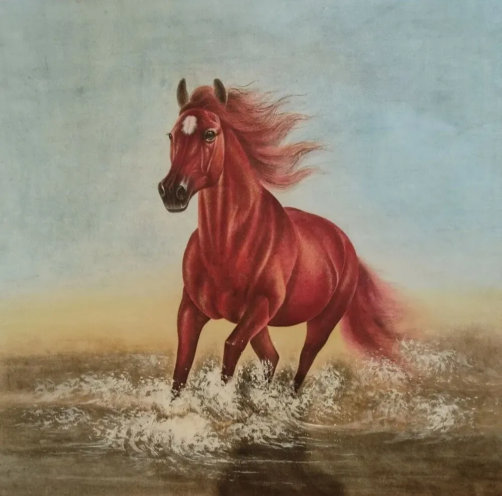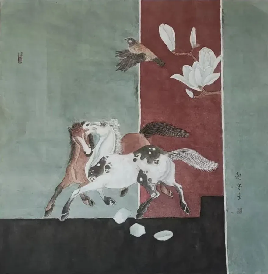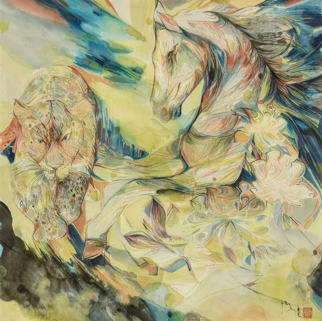 参展作品风格多元并蓄,既具现代审美意趣也兼有传统笔墨韵味,形成古意与今风共生、工笔与写意相映的独特风貌。这种风格的多元性,既是研究会内艺术家们艺术修养与艺术表现力的集大成凸显,也是金陵花鸟画在传承中不断发展壮大的佐证,一如即将到来的火马之年,既有传统底蕴的厚重,更有开拓创新的炽热。