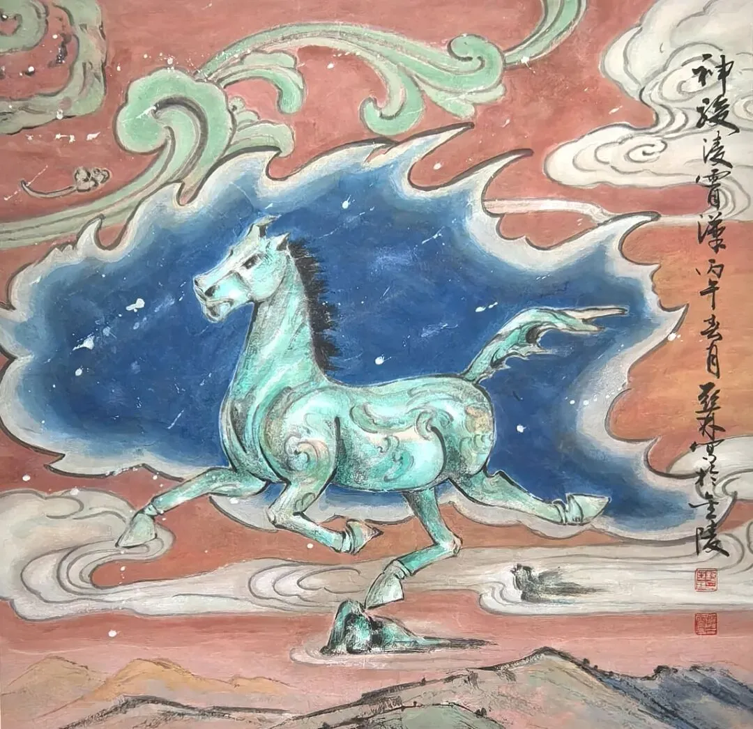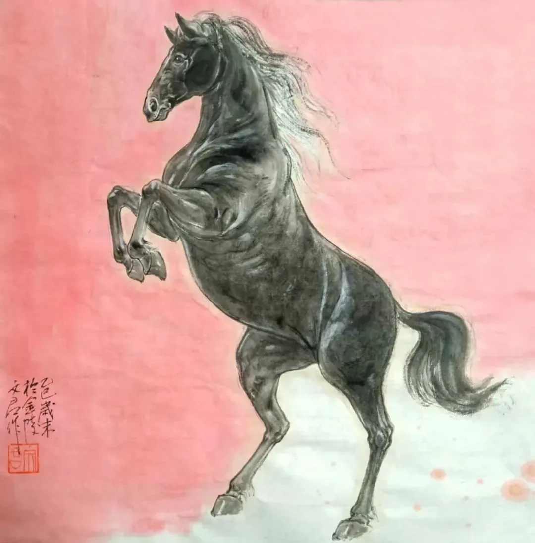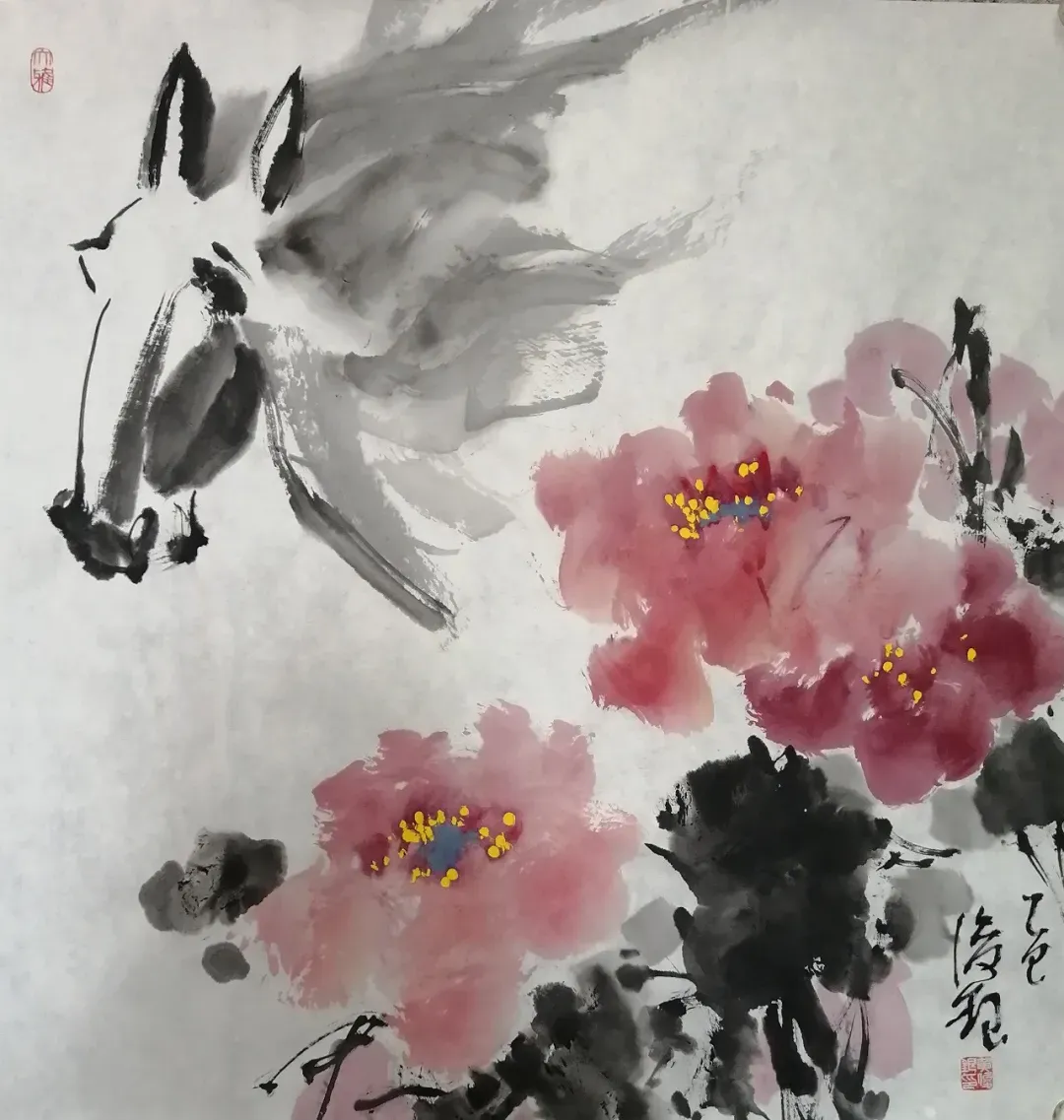 参展作品风格多元并蓄,既具现代审美意趣也兼有传统笔墨韵味,形成古意与今风共生、工笔与写意相映的独特风貌。这种风格的多元性,既是研究会内艺术家们艺术修养与艺术表现力的集大成凸显,也是金陵花鸟画在传承中不断发展壮大的佐证,一如即将到来的火马之年,既有传统底蕴的厚重,更有开拓创新的炽热。