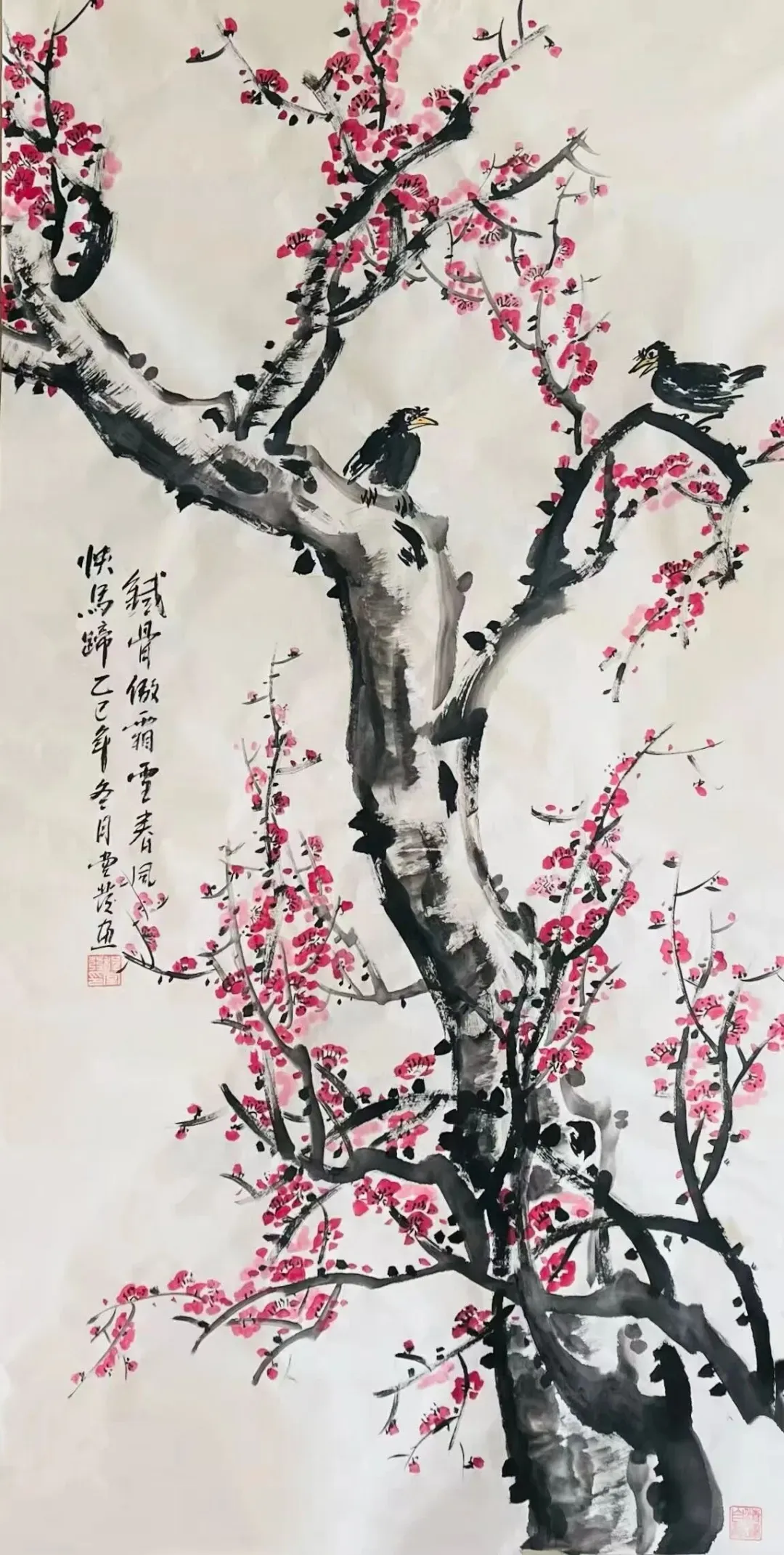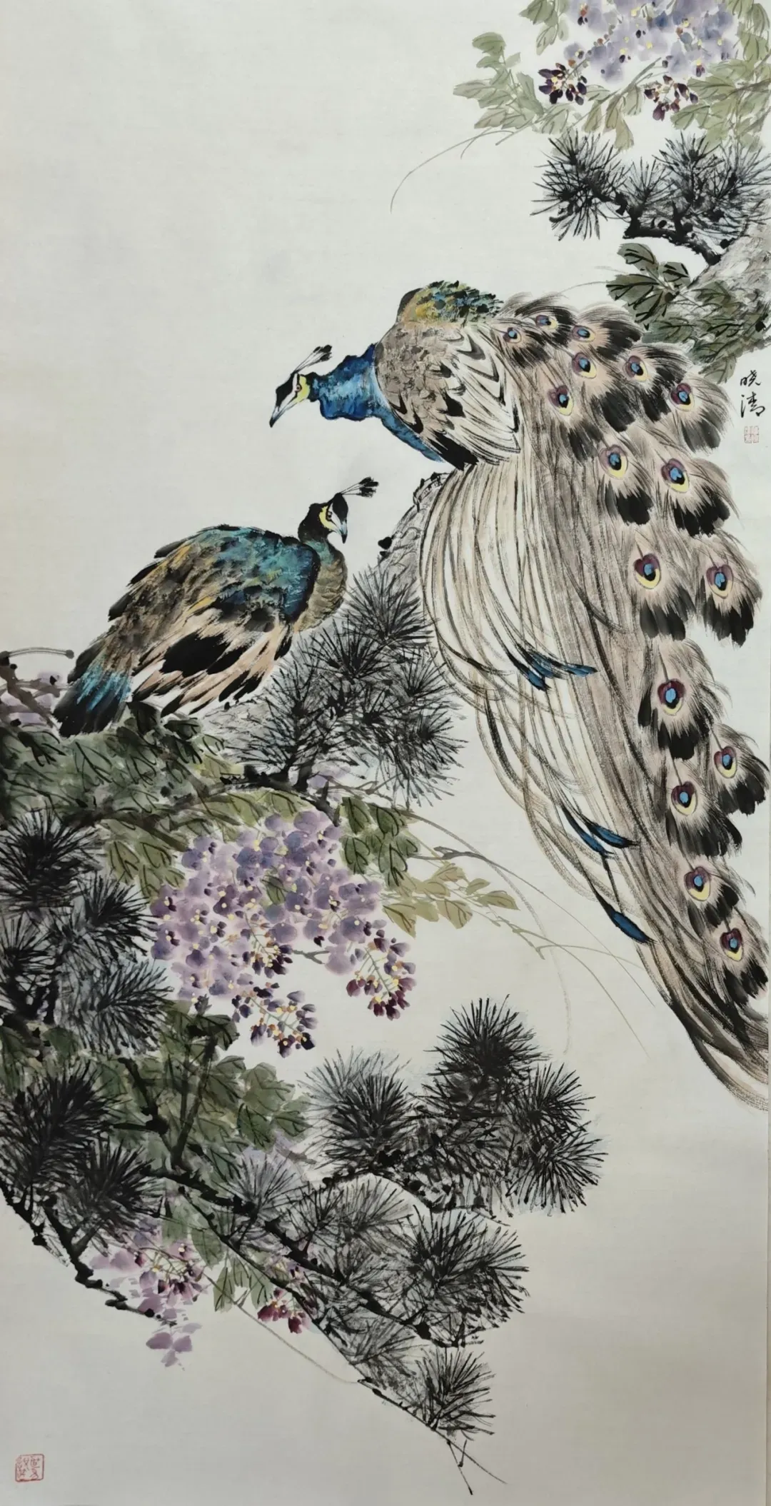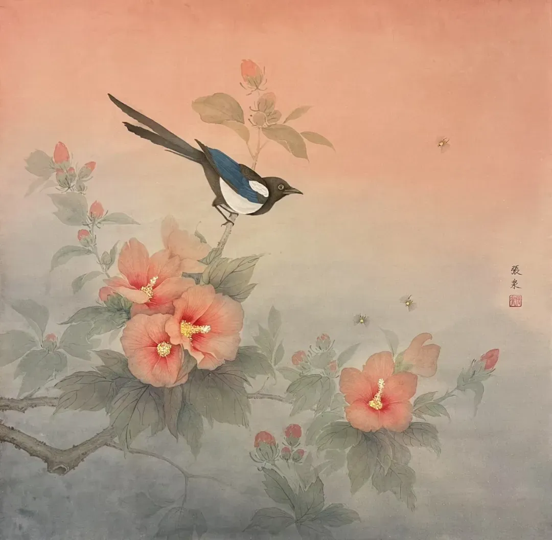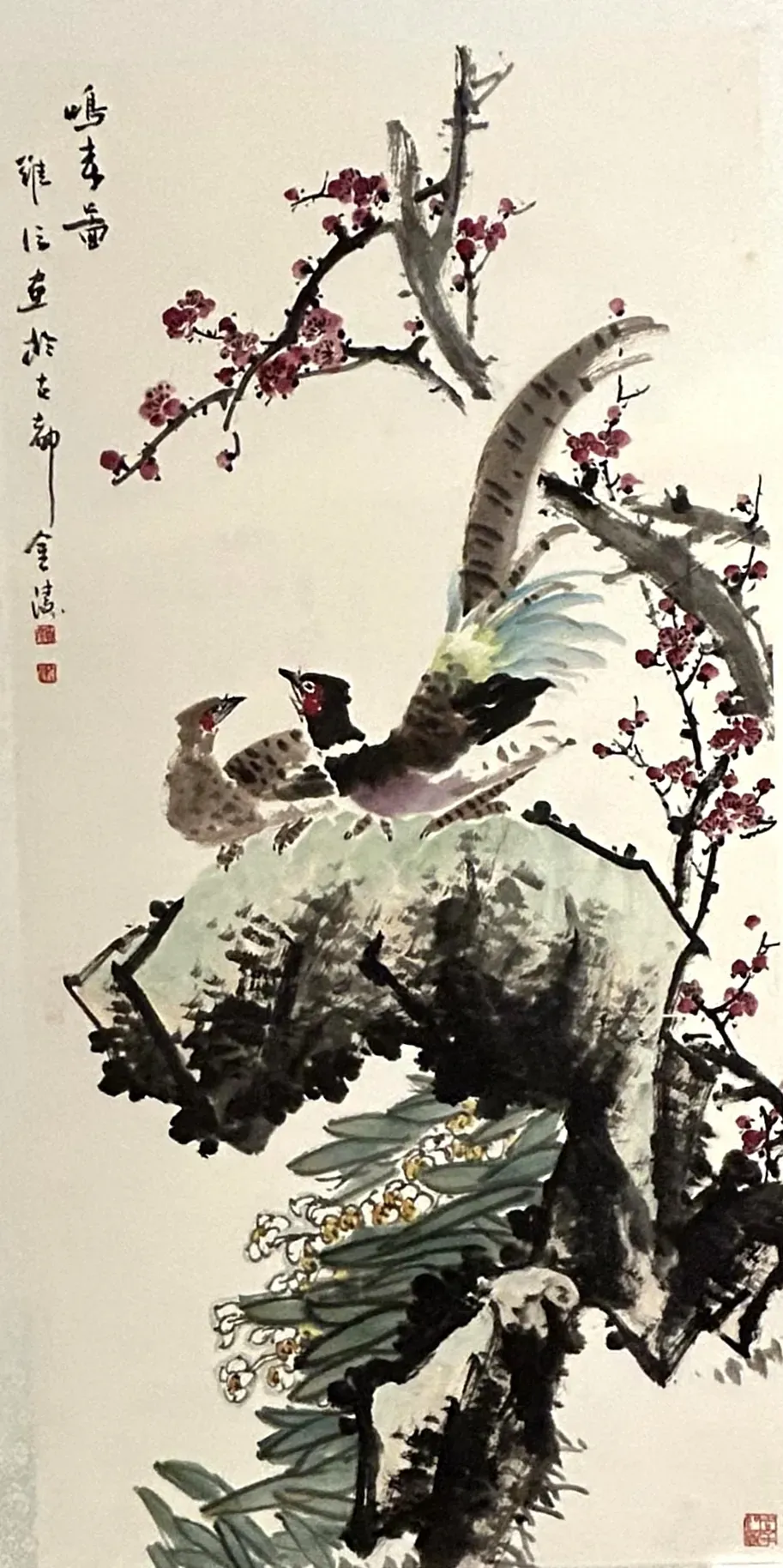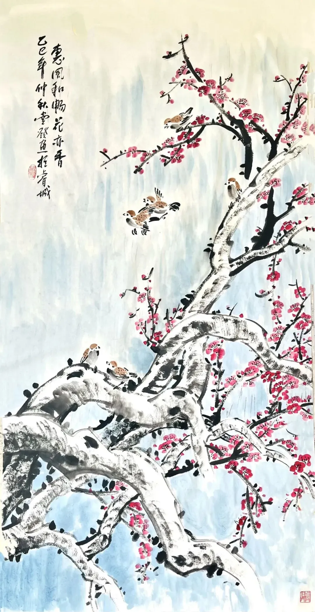 从参展作品所呈现的艺术观念上,艺术家们跳脱摹写自然的传统桎梏,将个人情怀、时代精神与自然之美相融共生,赋予花鸟画一种全新的精神内涵。不同于传统花鸟画托物言志的单纯象征性意义,此次作品更注重传统意涵与当代语境之间的对话,将现代生活的审美意趣以及对新春的祈愿等融入作品之中,突破了传统花鸟画的题材局限,让大自然中的花木禽鸟成为时代精神的载体。