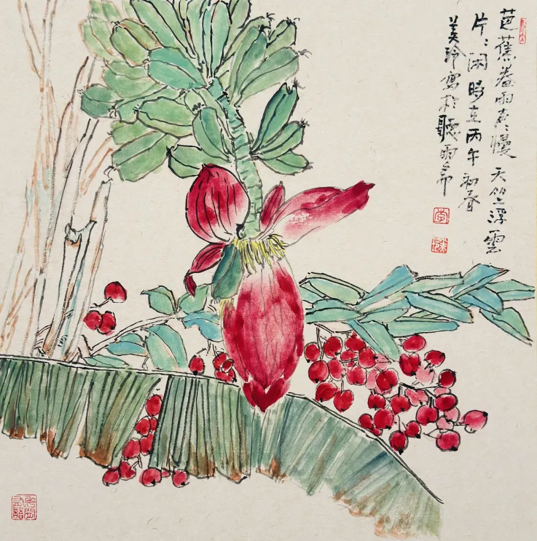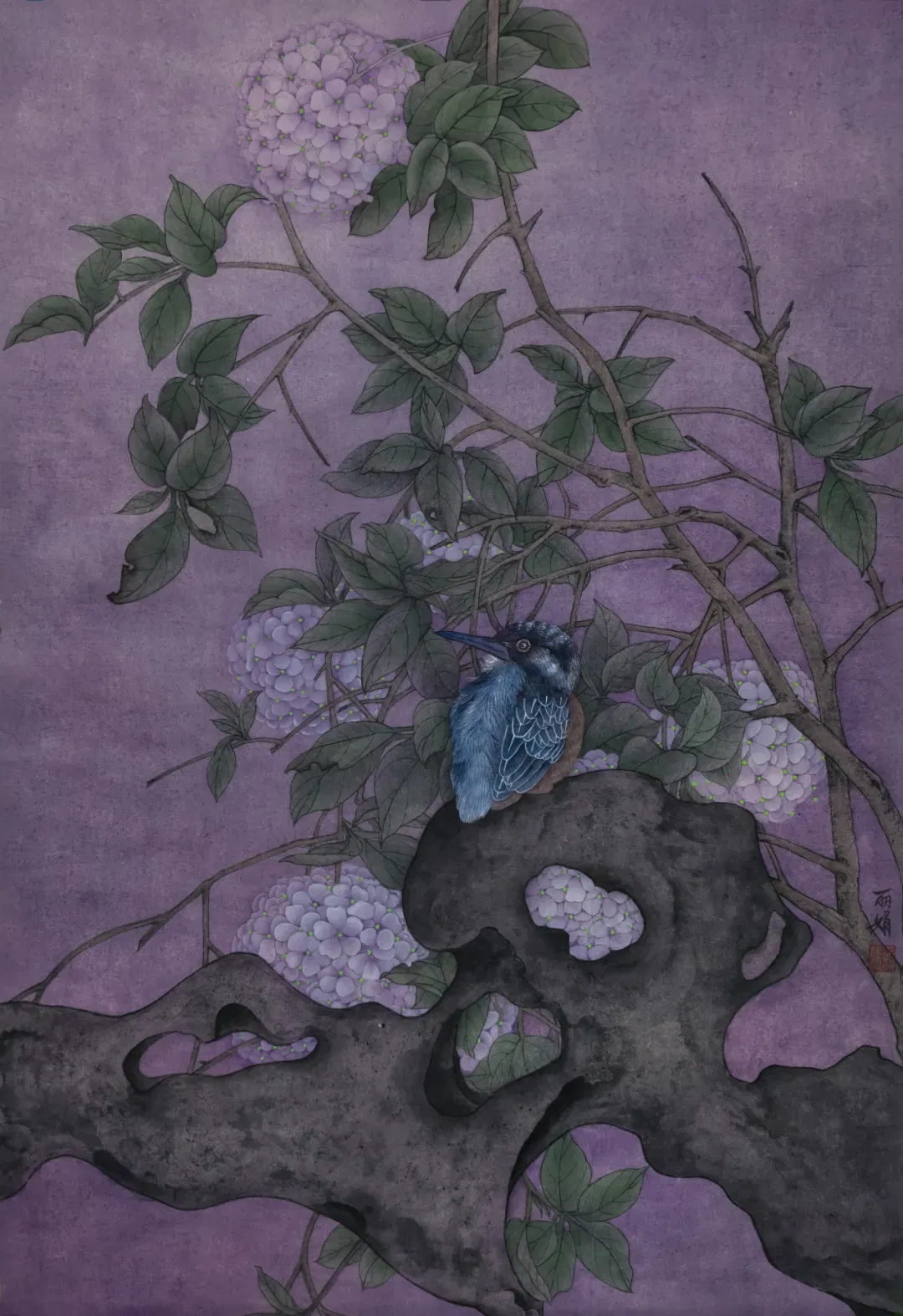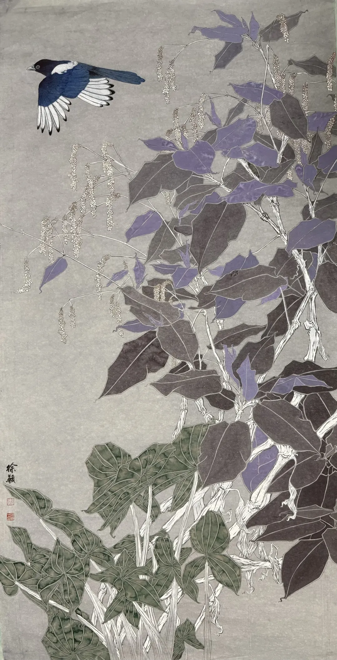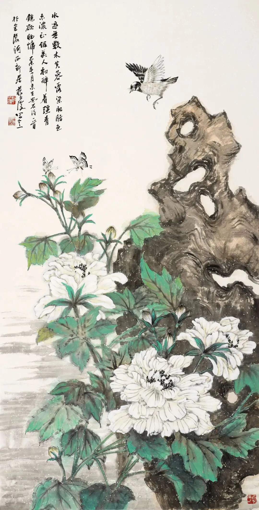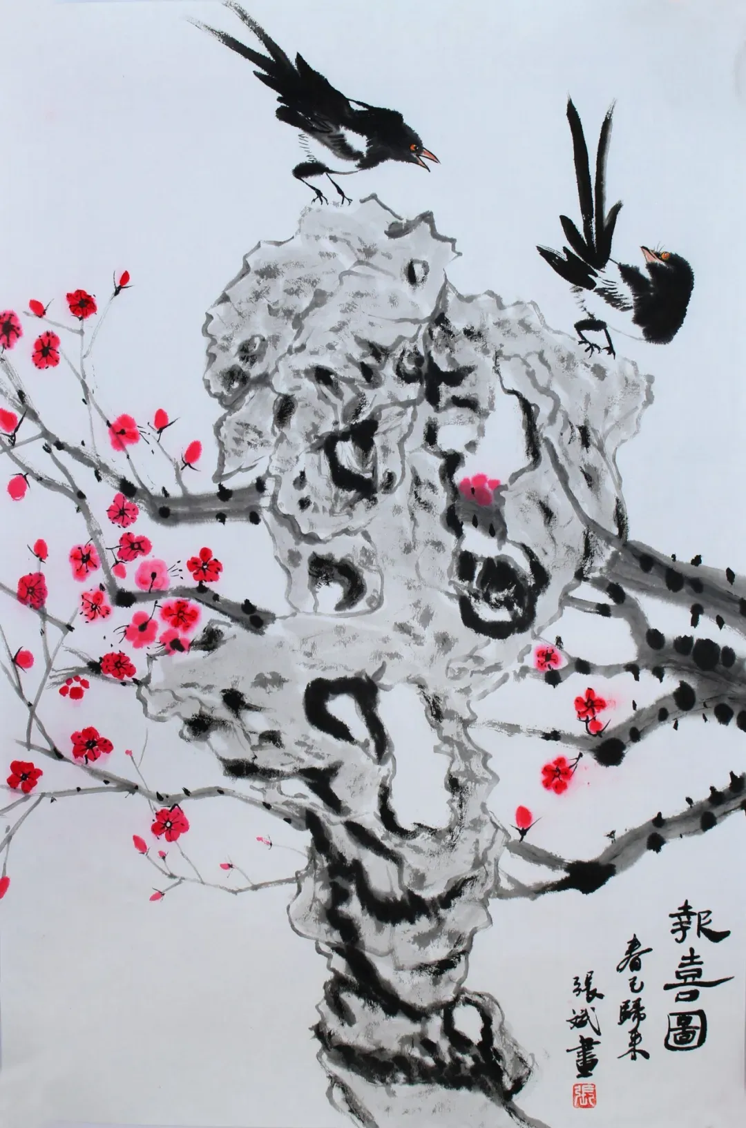 从参展作品所呈现的艺术观念上,艺术家们跳脱摹写自然的传统桎梏,将个人情怀、时代精神与自然之美相融共生,赋予花鸟画一种全新的精神内涵。不同于传统花鸟画托物言志的单纯象征性意义,此次作品更注重传统意涵与当代语境之间的对话,将现代生活的审美意趣以及对新春的祈愿等融入作品之中,突破了传统花鸟画的题材局限,让大自然中的花木禽鸟成为时代精神的载体。